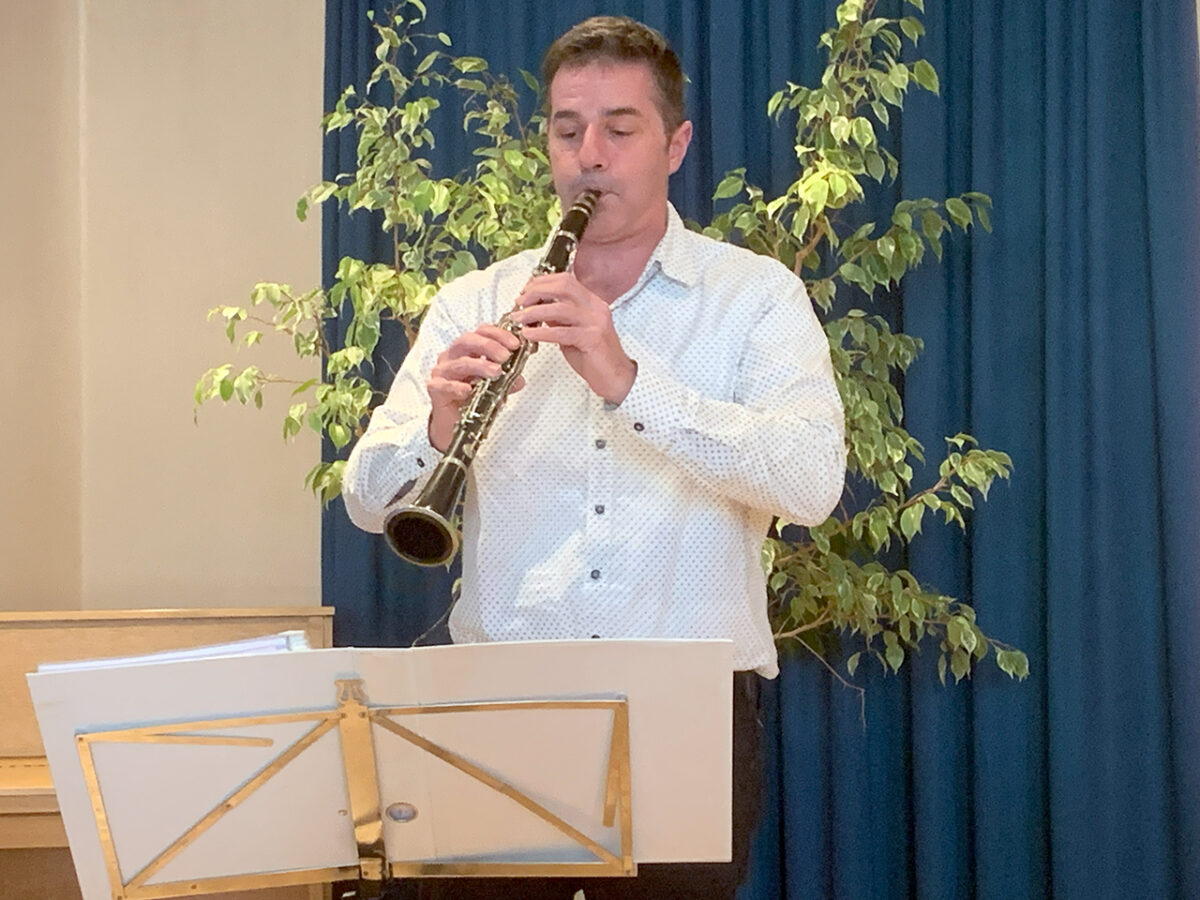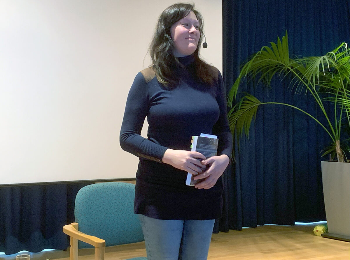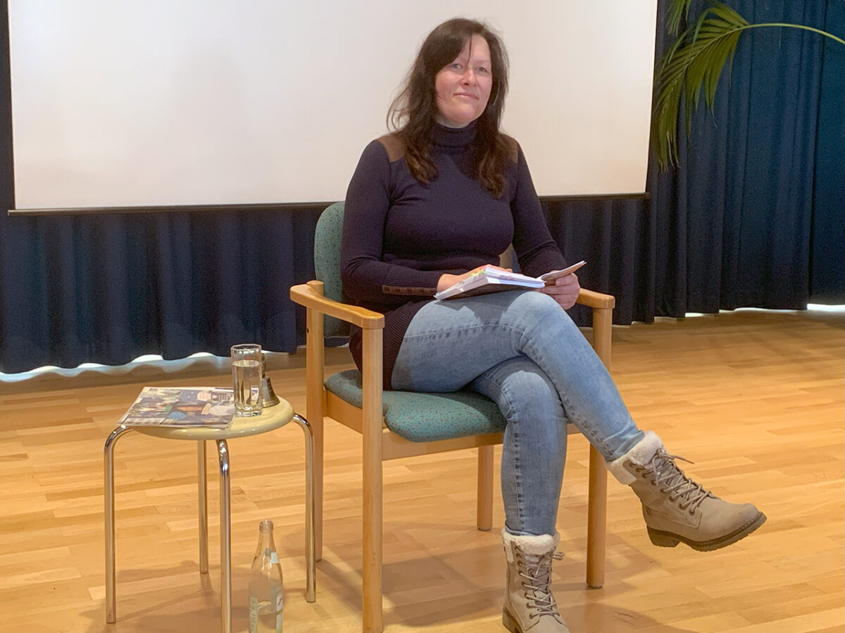 Nicole Lindner beschreibt bei der Lesung aus ihrem Buch „Aus der Krankheit ins Licht: Wie die Depression mich lehrte, den Weg meiner Seele zu gehen“ die wichtigsten Stationen ihres Leidens- und Genesungsweges – untermalt von mal melancholischen, mal heiteren Klarinettentönen ihres Mannes Christian, der ihr beim Prozess der Befreiung eine wichtige Stütze war.