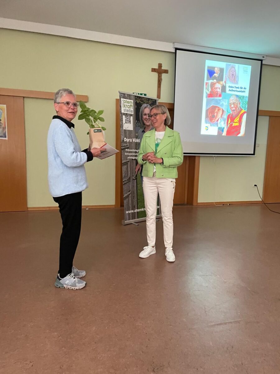 Im praktischen Teil durften die Teilnehmerinnen verschiedene Atemtechniken kennenlernen und ausprobieren. Besonders beeindruckt zeigte sich die Gruppe von der achtsamen Ballon-Atmung, die durch bewusstes Ein- und Ausatmen nicht nur zur Entspannung beiträgt, sondern auch den Blutdruck regulieren und die Konzentration fördern kann.