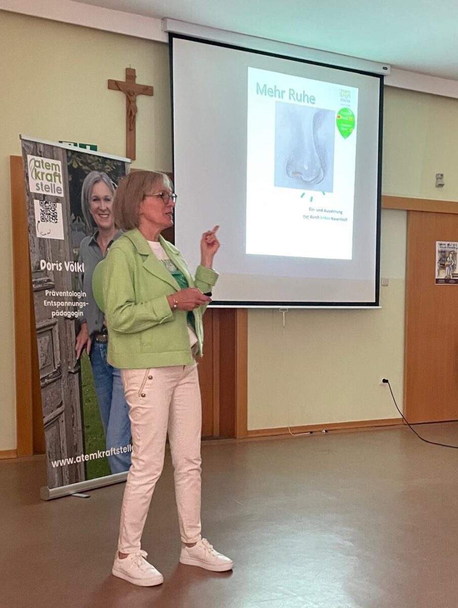 In einer lebendig und einfühlsam gestalteten Einführung vermittelte Doris Völkl theoretisches Wissen rund um die Wirkung des Atems auf das gesamte Wohlbefinden. Schon hier wurde deutlich: Richtiges Atmen ist weit mehr als ein körperlicher Reflex – es ist ein Schlüssel zu mehr Gelassenheit, Vitalität und Selbstbewusstsein.
