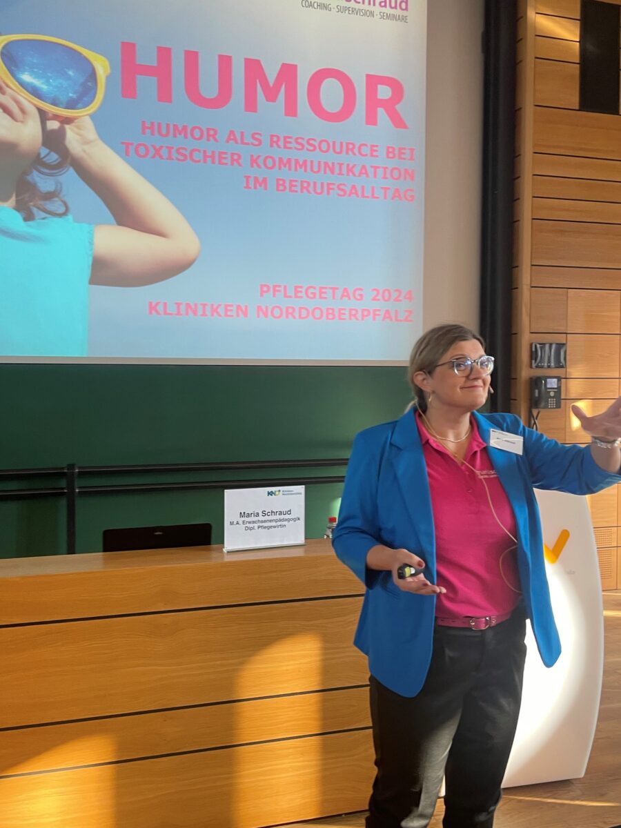 Es wurden ebenso Vorbehaltsaufgaben in der Pflege, Pflegebegutachtungen, Dekubitus und das diabetische Fußsyndrom behandelt. Referenten mit langjähriger Erfahrung boten Einblicke und praxisnahe Lösungen. Eine zentrale Rolle spielte die Kommunikation im Pflegealltag, wie Michael Hoffmann, Vorstand der Kliniken Nordoberpfalz, und Maria Schraud, Pädagogin und gelernte Pflegewirtin, betonten. Sie zeigten auf, wie wichtig ein gesundes Miteinander und Humor sind, um den Arbeitsalltag besser zu bewältigen. “Fünf Minuten Ärger schädigt das Immunsystem sechs Stunden lang”, erklärte Schraud und unterstrich damit die Bedeutung von Humor als Copingstrategie.