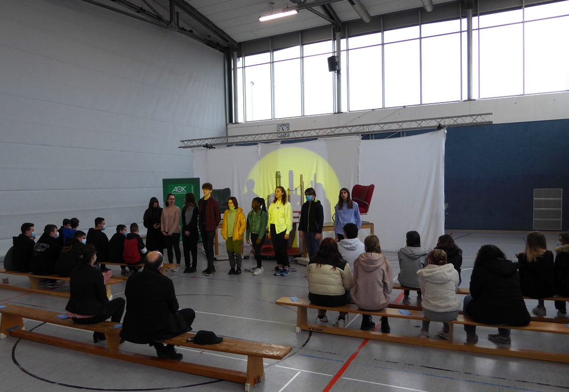 Noch immer sind psychische Probleme ein Tabuthema in der Gesellschaft – aber auch in vielen Familien zu Hause. Auf spielerische und anschauliche Art geht das Projekt auf das Thema ein. Die Schülerinnen und Schüler selbst werden zu den Schauspielerinnen und Schauspielern. Eine Woche lang bereiten sie das Thema Depressionen bei Jugendlichen unter Anleitung von Theatermacher Jean-Francois Drozak auf.
