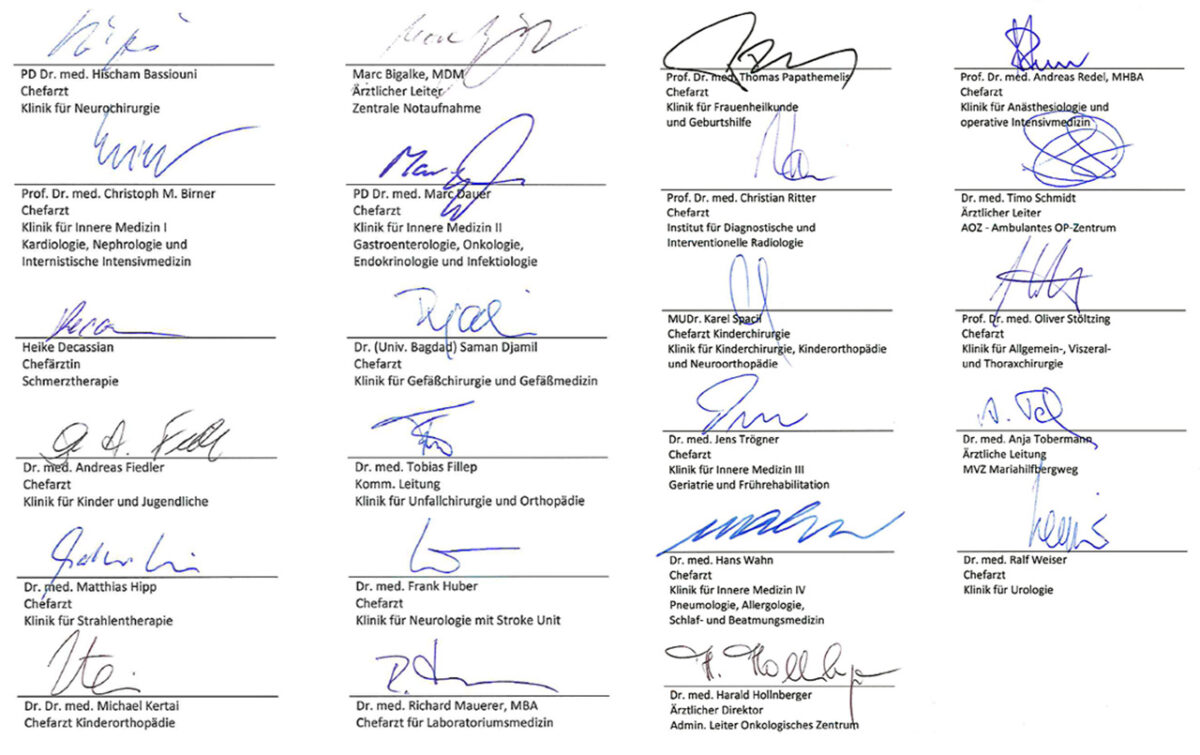 Mit vorzüglicher Hochachtung“ Unterschrift der 22 Chefärzte und des Klinik-Direktors