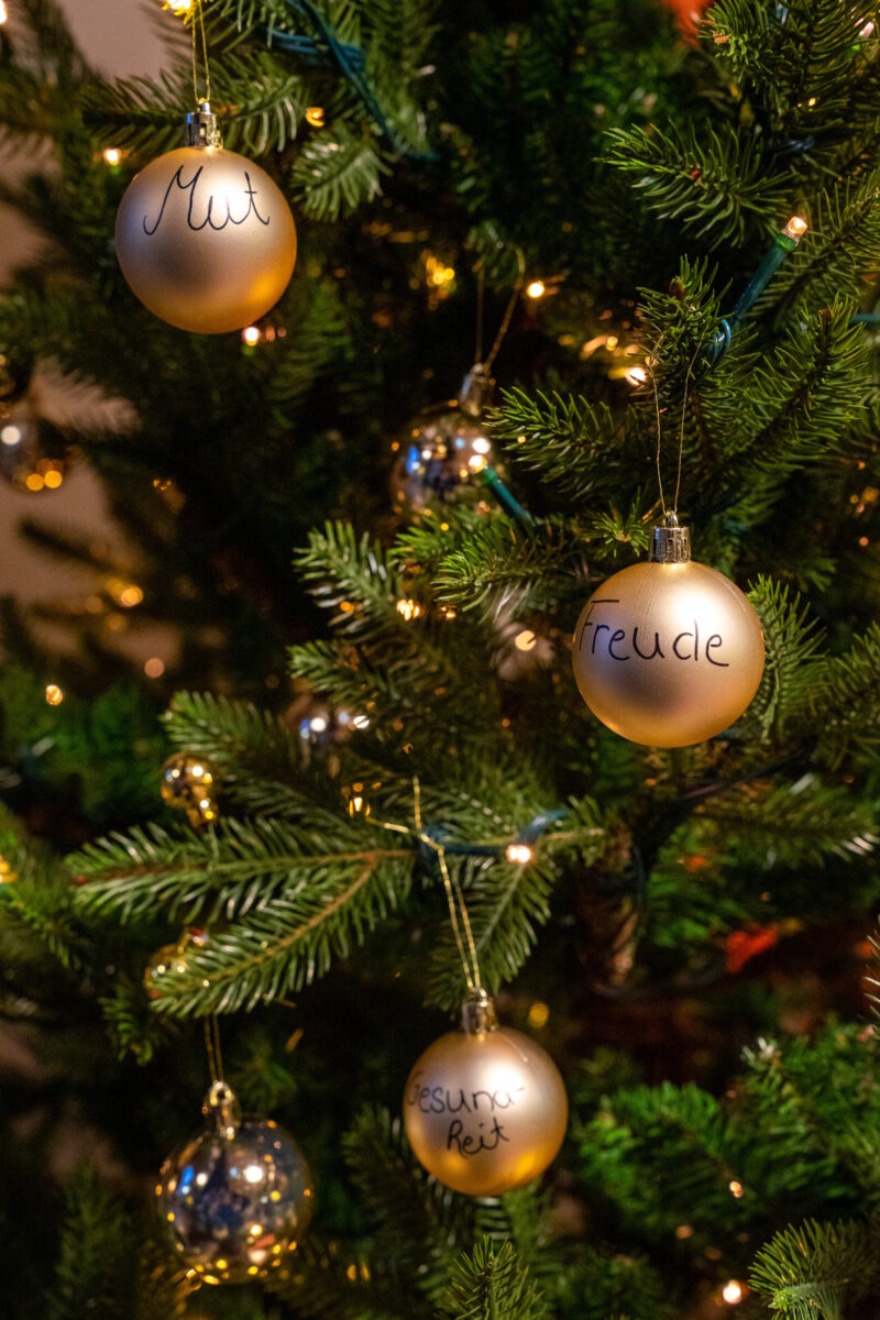 Wer die Adventfeier im Caritas-Alten- und Pflegeheim St. Martin vor Kurzem besuchte, nahm im Vorbeigehen Zuversicht mit: Am Eingang des Hauses hatten die Mitarbeitenden zwei Weihnachtsbäume aufgestellt, geschmückt mit guten Wünschen, notiert auf silbernen und roten Weihnachtskugeln. “Nehmen Sie sich eine beschriebene Kugel für zu Hause mit”, sagte Einrichtungsleiterin Stefanie Fuchs. “Nehmen Sie sich einfach, was Ihnen guttut.” Mut vielleicht, Freude oder Gesundheit.