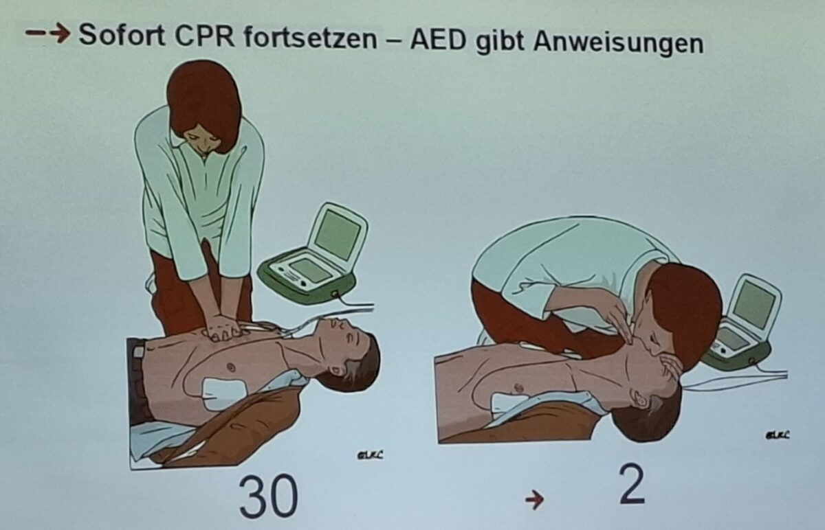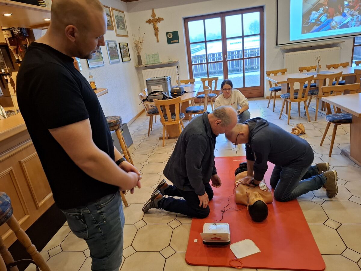 „Ein automatisierter externer Defibrillator ist ein lebensrettendes Gerät, das bei einem Herzstillstand durch klare Sprachanweisungen die Wiederbelebung unterstützt“, erklärte AED-Instruktor Rappl. Ziel seines Vortrags war es, den Teilnehmerinnen und Teilnehmern die Angst vor dem Einsatz eines Defibrillators zu nehmen und zu verdeutlichen, wie groß die Überlebenschancen durch eine schnelle Laien-Reanimation steigen können. Besonders eindringlich machte der Referent deutlich, wie wichtig rasches Handeln ist: „Setzt der Herzschlag aus, zählt jede Minute. Bereits nach drei bis fünf Minuten ohne Wiederbelebungsmaßnahmen können erste Hirnschäden durch Sauerstoffmangel auftreten.“