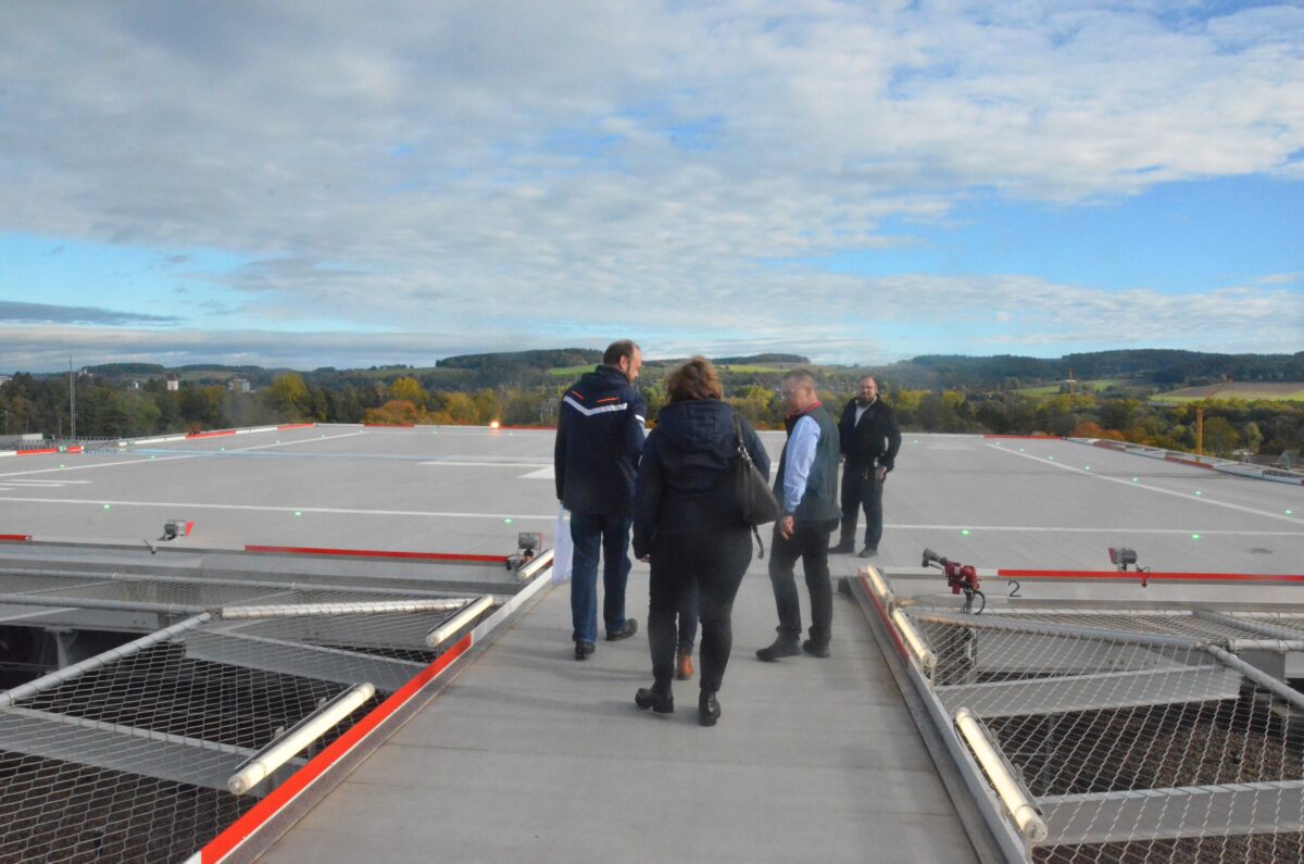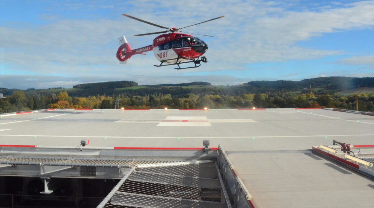 ILS-Nordoberpfalz-Leitstellenleiter Jürgen Meyer: „Man kann wirklich dort hingehen, wo man sonst nicht hineinkommt.“ Vor allem hoch zum Helipad mit seiner wunderbaren Aussicht, den unser Christoph 80 und Christoph 20 aus Bayreuth anfliegen. Laut dem Leiter der Revision, Mario Gittler, landen und starten die Helis pro Jahr rund 400 Mal auf dem Klinikdach. In Vorträgen wolle die integrierte Leitstelle „die Wichtigkeit des Notrufes aufzeigen“.