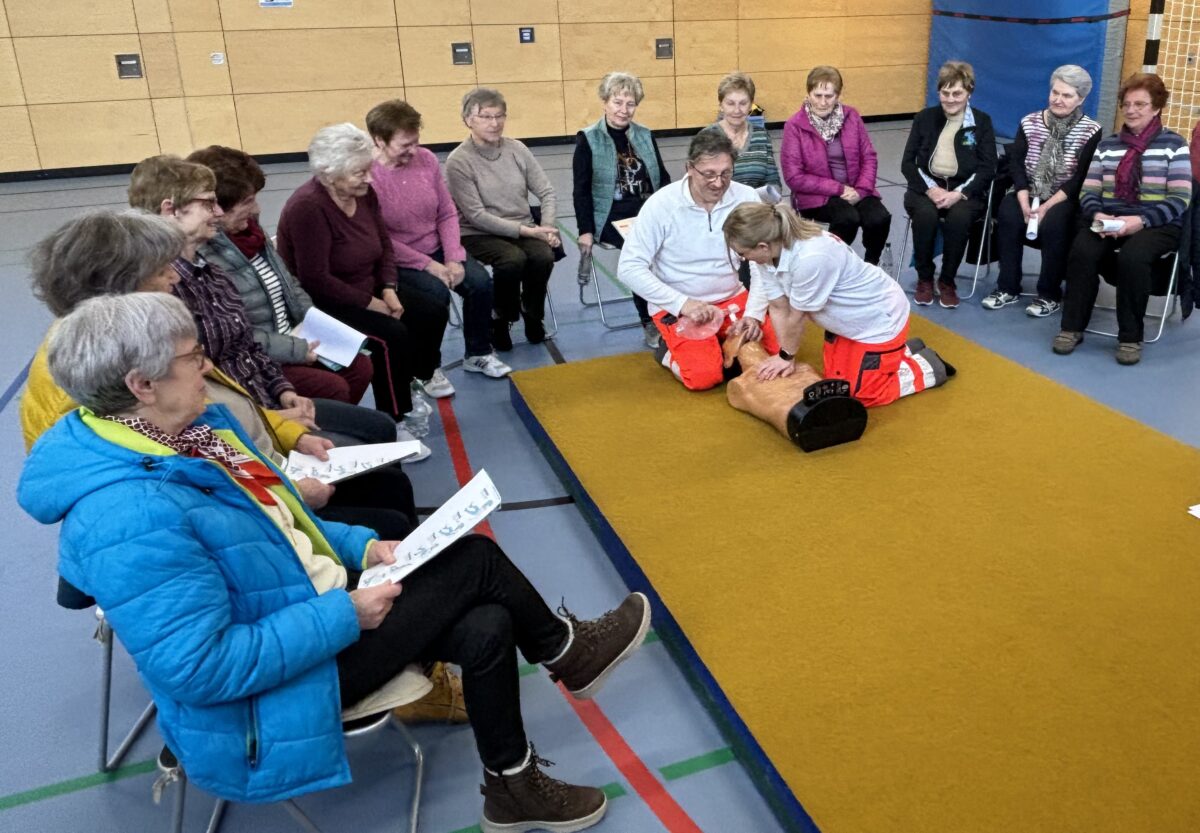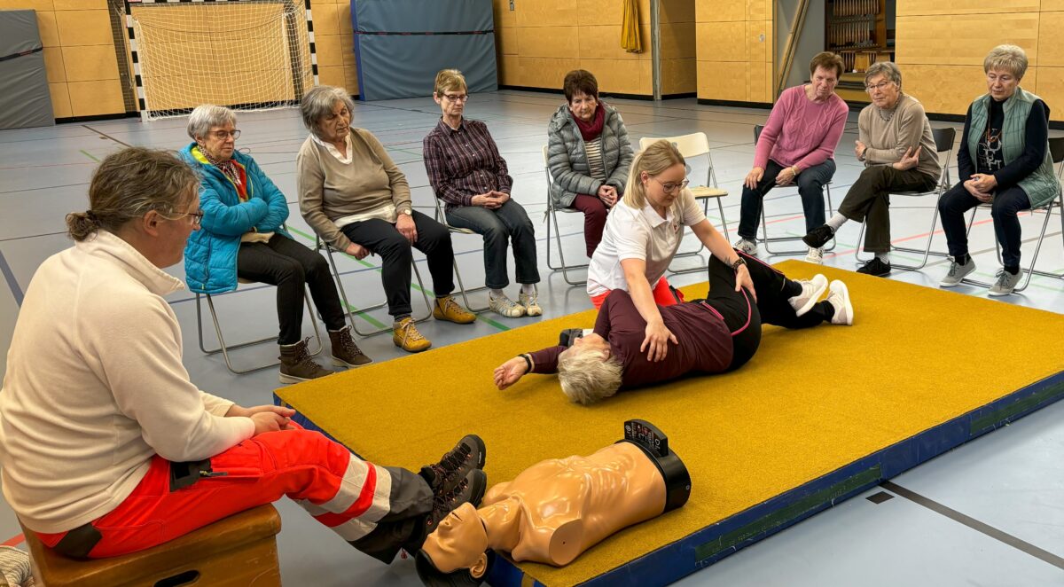Des Weiteren wurden die Symptome eines Schlaganfalls, einer Ohnmacht und eines Herzinfarkts besprochen sowie die entsprechenden Maßnahmen zur Hilfeleistung erläutert. Die Teilnehmer hatten die Gelegenheit, das Anlegen eines Druckverbandes zu üben, um im Ernstfall schnell und effektiv handeln zu können. Zum Abschluss erhielten die Teilnehmer Informationsmaterial, das sie bei Bedarf zur Vertiefung ihres Wissens nutzen können.