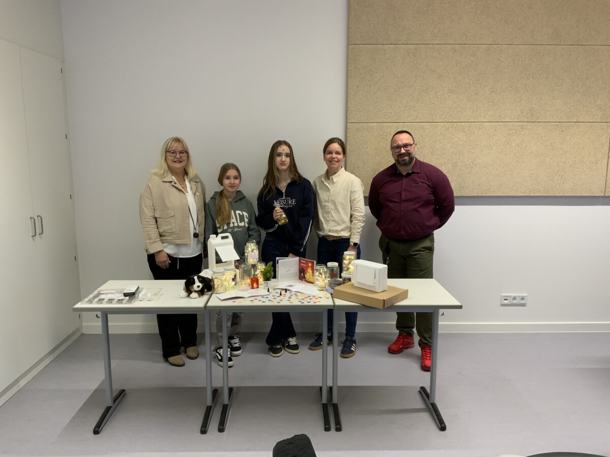 Ihre große Tierliebe motiviert sie, ihre Freizeit in den Dienst des guten Zwecks zu stellen. So fertigen die beiden unzählige Geschenkartikel, die sie am Basar gegen eine Spende anbieten. Ob weihnachtlich dekorierte Gläser für Hunde- und Katzenfreunde, Backmischungen für gebrannte Mandeln und Brownies, pfiffige Verpackungen für Verliebte, 3D-Druck-Präsente oder kreative Upcycling-Arbeiten – die Vielfalt beeindruckte Rektor Holger König und Konrektorin Julia Emmerling, die das außergewöhnliche Engagement der Mädchen sehr lobten. Besonders staunte die Schulleitung über originelle Vogelhäuschen aus alten Kanistern.