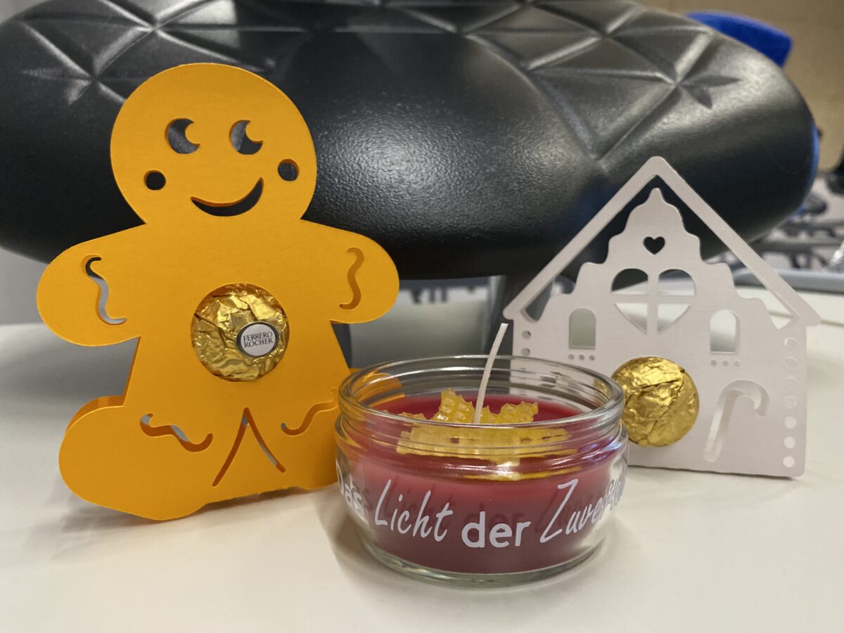 Unterstützung erhalten die beiden von der Klasse 5g, welche mit ihren Tutorinnen Anja, Lina, Mara, Sophie und Theresa ebenfalls fleißig basteln. Sandra Hering, Zweite Realschulkonrektorin und Verantwortliche für die Ganztagsschule, schätzt diesen ehrenamtlichen Einsatz sehr. Gemeinsam mit der Klasse 5a unter Leitung von Kunstlehrkraft Silke Hertel sowie 3D-Spezialist Lukas Siegler entstehen die Boxen „Winterwunder der Hoffnung“ und „Winterzeit für dich“. Auch Schulhundeführerin Studienrätin Maria Busch begrüßt den uneigennützigen Einsatz der Mädchen und steht beratend zur Seite.