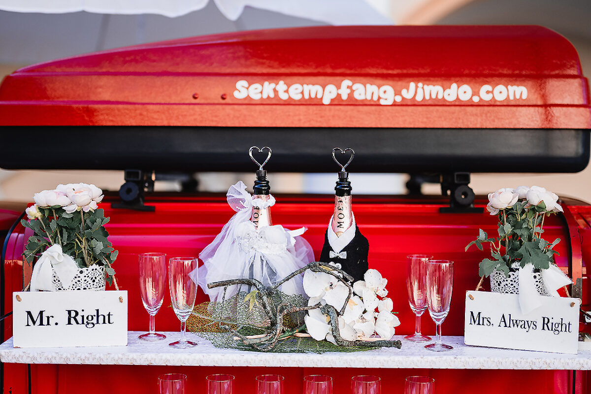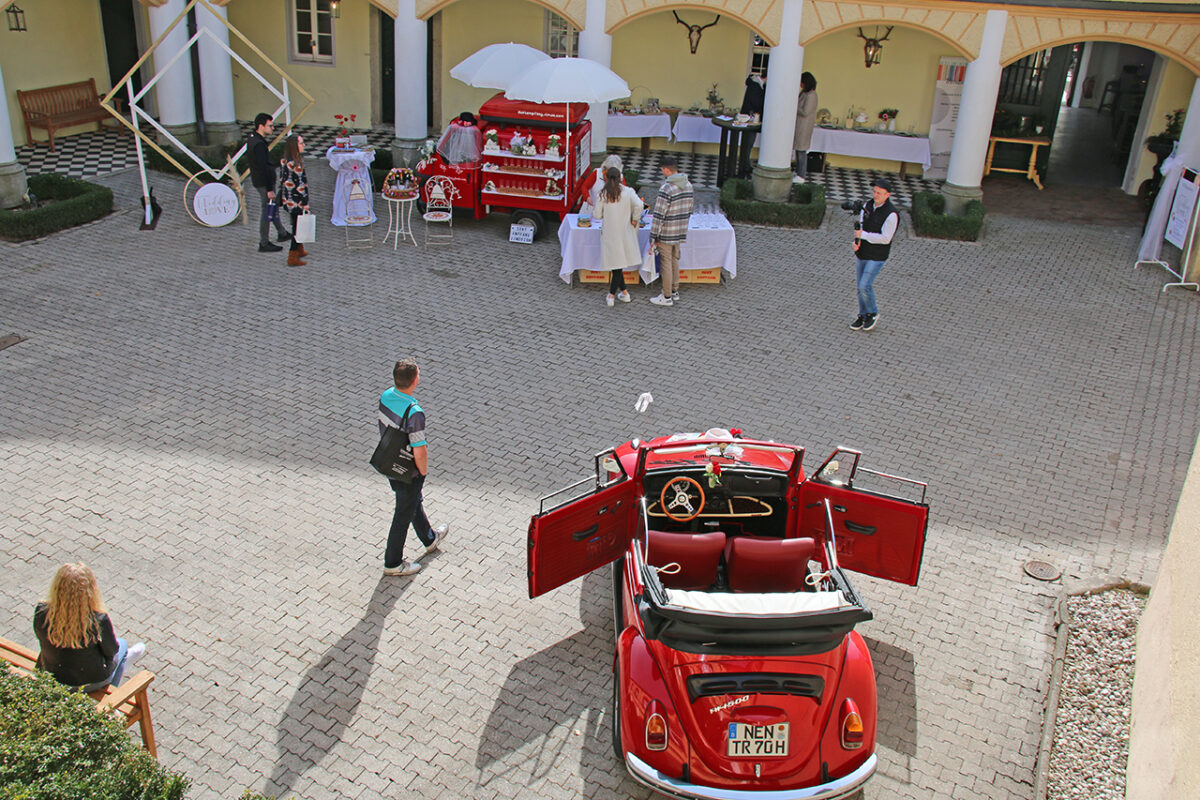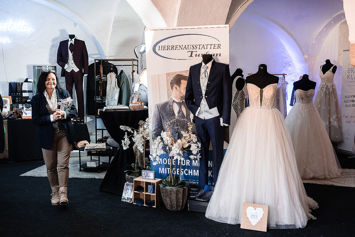 Den umtriebigen Schlossherrn zwischen den Ausstellern mit ihren blendend weißen Duchesse-, Empire-, Fishtail-, Meerjungfrauen oder Goldet-Brautkleidern, den Smokings, Dreiteilern mit Westen, Einstecktüchern, Fliegen und Krawatten, den gold-, silber- und platingeschmiedeten Ringen, den festlich geschmückten Hochzeitstafeln und den passenden Oldtimern für die Fahrt zum Altar zu finden, ist gar nicht so einfach.
