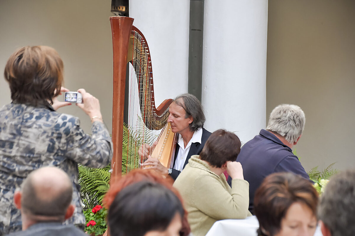 „Aber um jährlich rund 30.000 Besucher zu Gartentagen, Hochzeiten, Hochzeitsmessen, Ritteressen, den Highland-Games, dem Schlossfestival und Weihnachtsmarkt zu locken, muss das Ambiente zeitgemäß passen.“ So richtet er peu à peu einen Festsaal her, baut die Maschinenhalle zum Stadel um, nutzt das herrliche böhmische Gewölbe für Veranstaltungen.