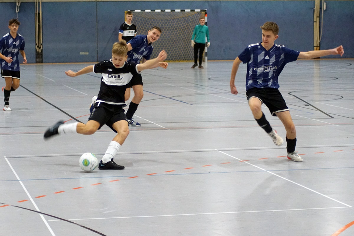 Später am Nachmittag das wohl kampfbetonteste Turnier an diesem Wochenende. Acht B-Jugend-Mannschaften (14 bis 16 Jahre) männlich, davon zwei aus der Spielgemeinschaft mit Tremmersdorf/Trabitz/Neustadt am Kulm kämpften um den Titel, der schließlich wieder nach Oberfranken ging. In einem rein fränkischen Finale gewann die SG Seybothenreuth gegen die SG Pegnitz. Dritter wurde die SG Tirschenreuth vor der SG SC Eschenbach rot. Es folgten SG Vohenstrauß, SG Pressath, SG SC Eschenbach schwarz und SG Auerbach. Als Preis bekam jede Mannschaft einen Spielball.