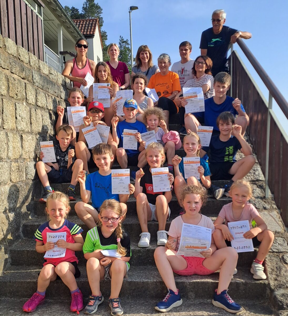 Das Abzeichen in Silber holten sich die Erwachsenen Elena Schwanitz (1), Manuela Strunz (2), Linda Kick (5) und Mirjam Schöberl (19), das Abzeichen in Gold Isabel Schöberl (9), Ricarda Näger-Schöberl (26), Silke Haberkorn (10), Irene Grünwald (24), Fabian Schöberl (13), Andreas Kick (6) und Thomas Hertrich (3).