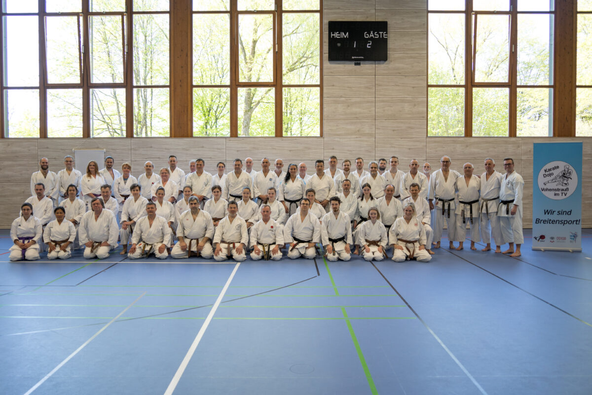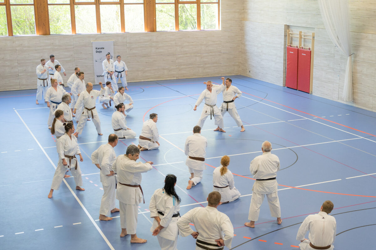 Insgesamt 55 Karate-Begeisterte waren angereist, darunter Falk Neumann, der Präsident des Thüringer Karateverbands. Er pflegt seit über zwei Jahren eine Freundschaft zum Vohenstraußer Dojoleiter Marcel Bieber und den dortigen Karateka. Die Referenten des Lehrgangs, Helmut Körber und Marcel Bieber, führten die Teilnehmer durch die drei Säulen des Karate: Khion, Kata und Kumite.