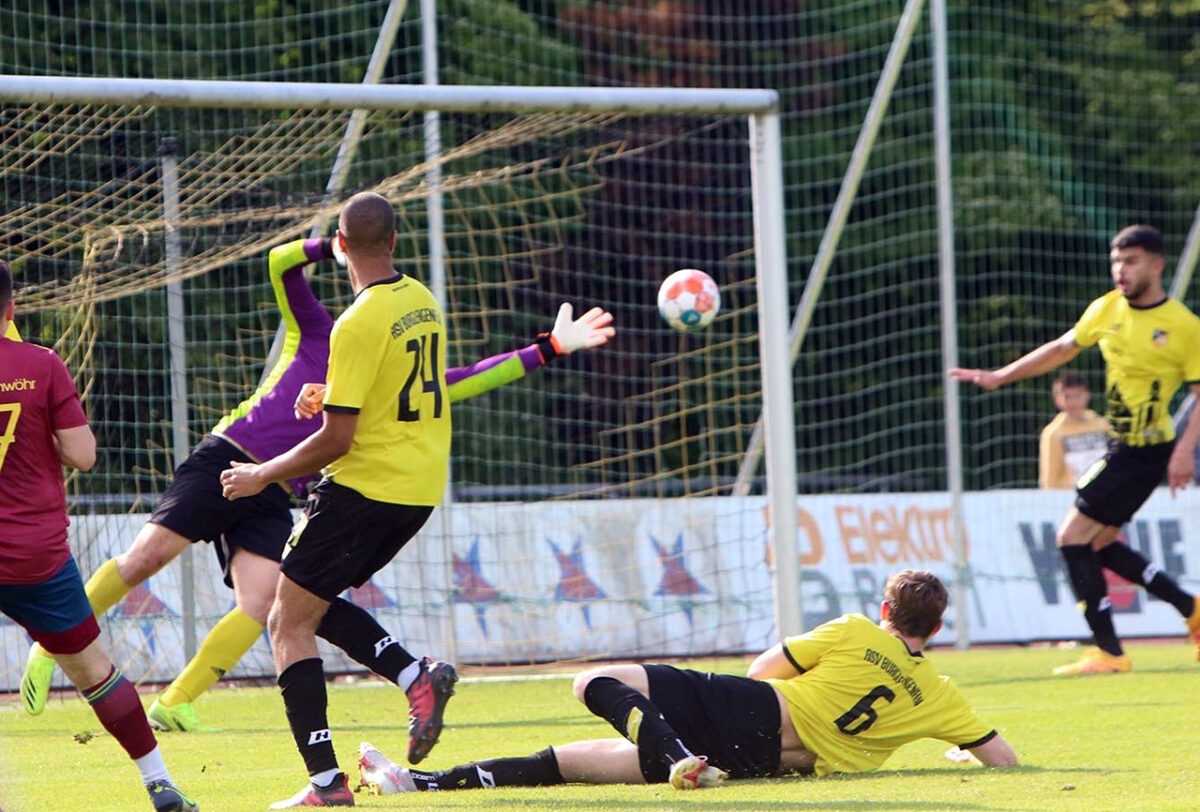 In der 35. Minute dann das 1:0 für den Landesligisten. Den ersten Schuss pariert Wächter noch, hat aber gegen Dennis Kochs zweiten Versuch das Nachsehen, der den Abpraller zum umjubelten 1:0 einschiebt.