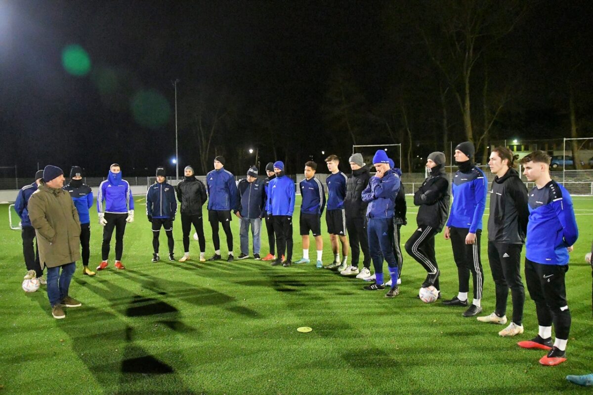 „Jede Trainingseinheit baut aufeinander auf und im ersten Punktspiel am 4. März gegen Kornburg wollen wir es unseren Zuschauern und dem Gegner zeigen. So werden wir mit dem Abstieg nichts mehr zu tun haben“, gab sich der neue starke Mann an der Seitenlinie optimistisch. Am Montagabend hatte das neue Trainergespann Michael Riester und Marco Lorenz (Co) auf die hell erleuchteten Kunstrasenplätze des Vereins geladen. Auch Vorsitzender Michael Kurz ließ es sich nicht nehmen, beim ersten Training nach der Winterpause dabei zu sein. In seiner kurzen Ansprache machte er deutlich: „Wir haben alles für Euch gemacht, nun liegt es an jedem Einzelnen. Wir sind davon überzeugt, dass ihr den Klassenerhalt Bayernliga schafft.“