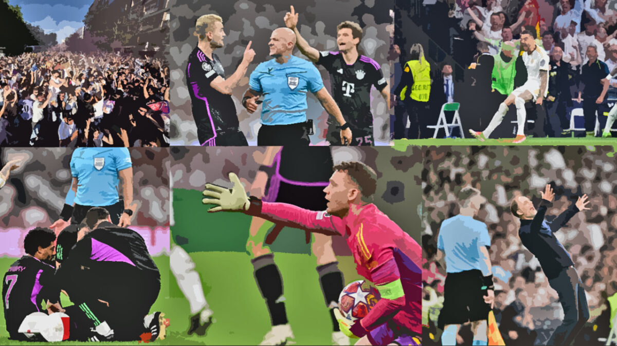 Der nächste Schock vier Minuten später: Rüdiger verlängert die Ecke des kurz zuvor eingewechselten Luka Modrić an den Fünfer, wo erneut Joselu mutterseelenallein das Ding über die Linie drückt – der Linienrichter wedelt mit der Fahne, kollektives Aufatmen bei den Münchenern. Von wegen: erneut wird die Szene überprüft, kein Abseits, das Tor zählt, 2:1 (90+2.). Wie im Hinspiel bringt ein Standard des 38-jährigen Kroaten den späten Tiefschlag.