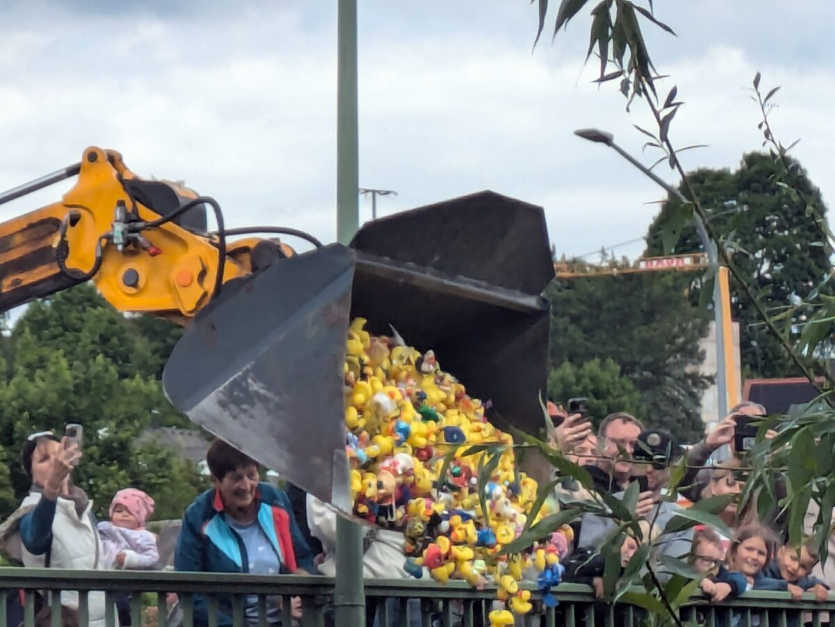 Die tierischen, teilweise bunt geschminkten, Rennteilnehmer aus Kunststoff wurden von der Wasserwacht Vilstal-Kümmersbruck auf Höhe des Badparkplatzes aus dem Wasser gefischt.