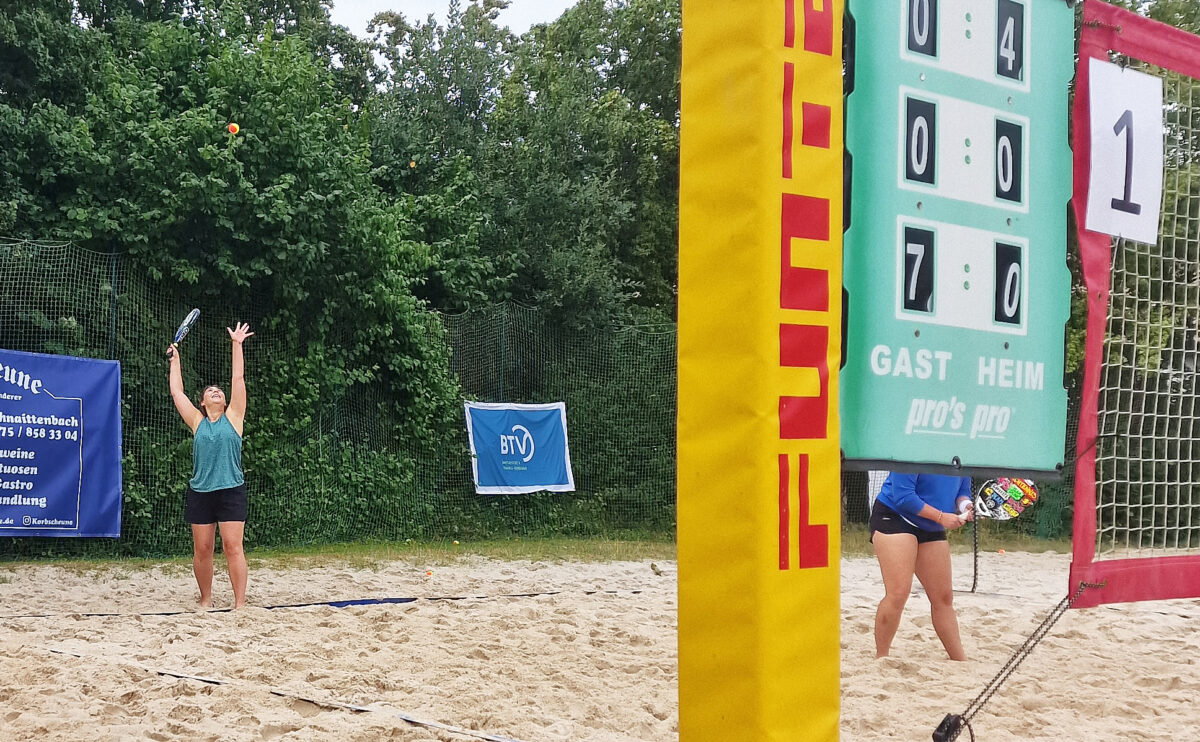 Wie letztes Jahr wurden auf den vier Beachfeldern im Sportzentrum des TuS Schnaittenbach die Tennisschläger durch Paddles beziehungsweise Beachtennisschläger, ausgetauscht, und zum zweiten Mal am zusätzlichen Freitag auch im Jugendbereich ein bayerischer Meister gesucht und gefunden. Den weißen Kaolinsand unter den Füßen, die Sonne, eine Cocktailbar am Samstag und Sonntag sowie gute Laune trotzten Regenschauern und sorgten für fantastischen Sport auf der Anlage.