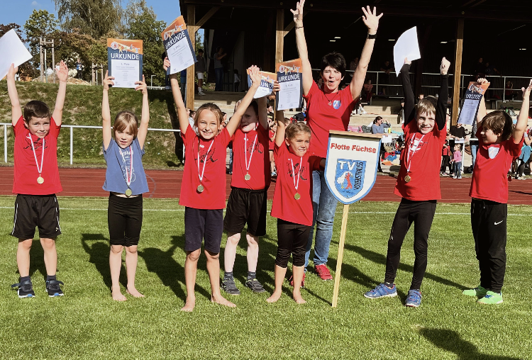 In der U 8 mussten die Disziplinen Hindernissprint-Staffel, Einbeinhüpfer-Staffel, Schlagwurf und Biathlon erfüllt werden. Die Mannschaft des TV Vohenstrauß überzeugte in allen vier Disziplinen und belegte zum Schluss punktgleich mit den Kindern der DJK Weiden den ersten Platz in ihrer Altersklasse. Voller Stolz holten sie sich bei der Siegerehrung ihre Urkunden und Medaillen ab.