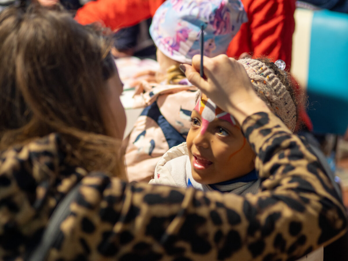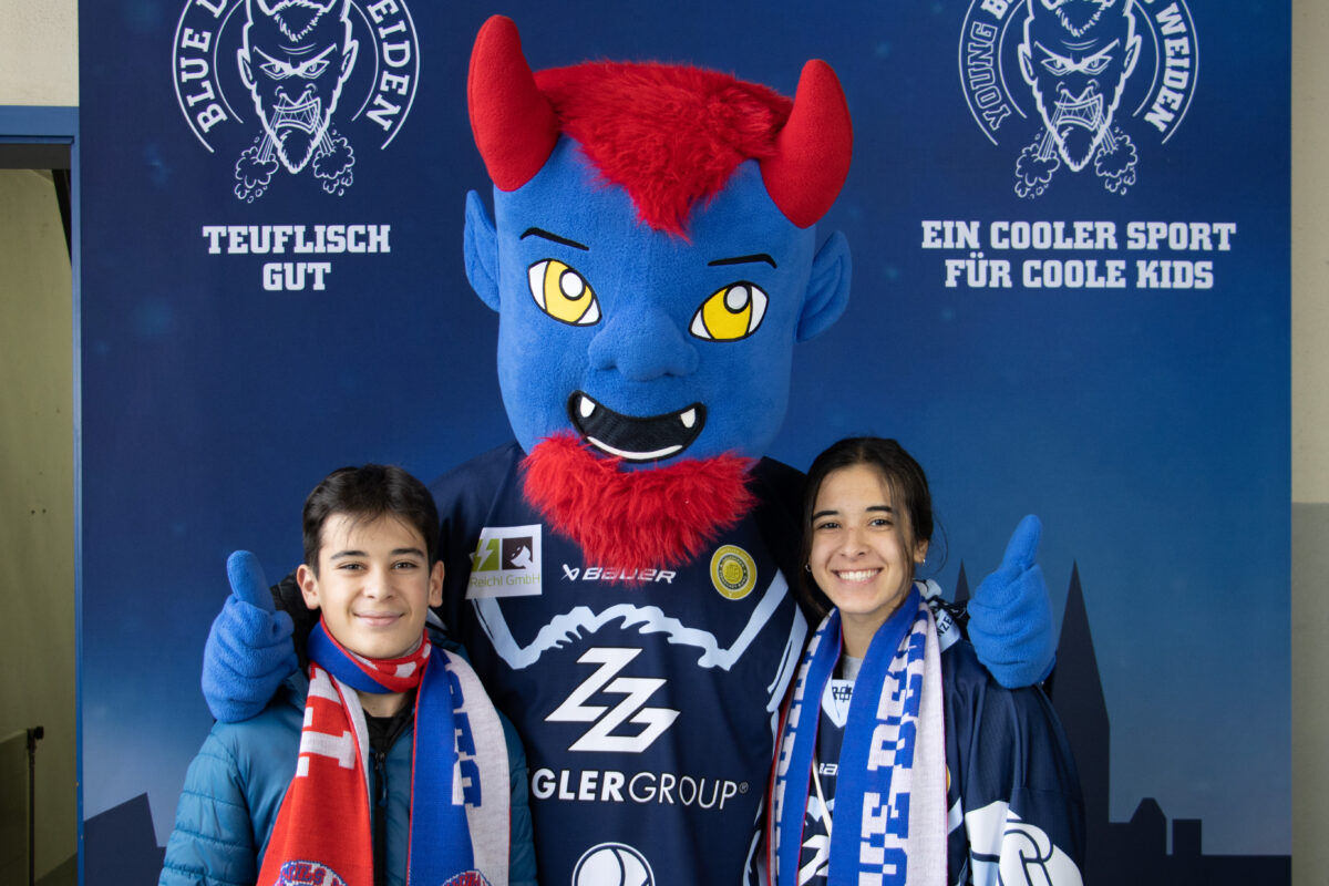 Die Besucher konnten sich auch mit dem Blue Devils-Maskottchen fotografieren lassen und viele Kinder waren beim Kinderschminken dabei.