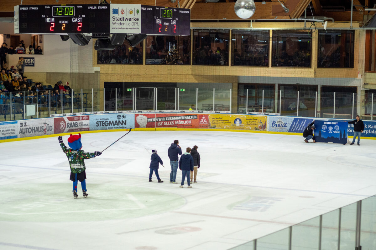 Neben einem Spiel der U 9 in der ersten Drittelpause gab es in der zweiten Pause den “Devils Shot”, wo drei Fans die Möglichkeit hatten, jeweils einen Devils-Diner-Gutschein im Wert von 60 Euro zu gewinnen.