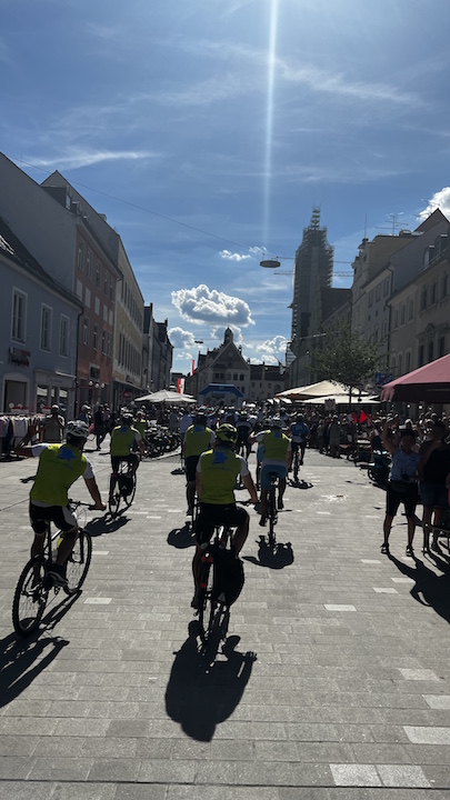 Aufstehen, frisch machen und mit dem Rad zum Frühstück strampeln. Gestern ging es von Landau an der Isar über die Wasserpause Dornwang, wo uns die Einwohner herzlich willkommen hießen, weiter nach Ergolding zur Mittagspause, um von dort frisch gestärkt weiter nach Freising zu radeln.