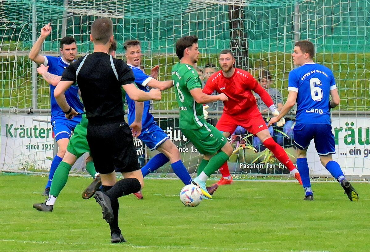 Fabio Bozesan nutzte in der 28. Minute ein falsches Zuspiel von Stephan Graf und erzielte aus kurzer Distanz das 1:0. So ging es weiter, in der 34. Minute war es erneut Bozesan, der die Weidner Hintermannschaft austanzte und gekonnt den Ball auf den Kopf von Tizian Hümmer zirkelte. Keeper Lukas Kycek hatte keine Chance.