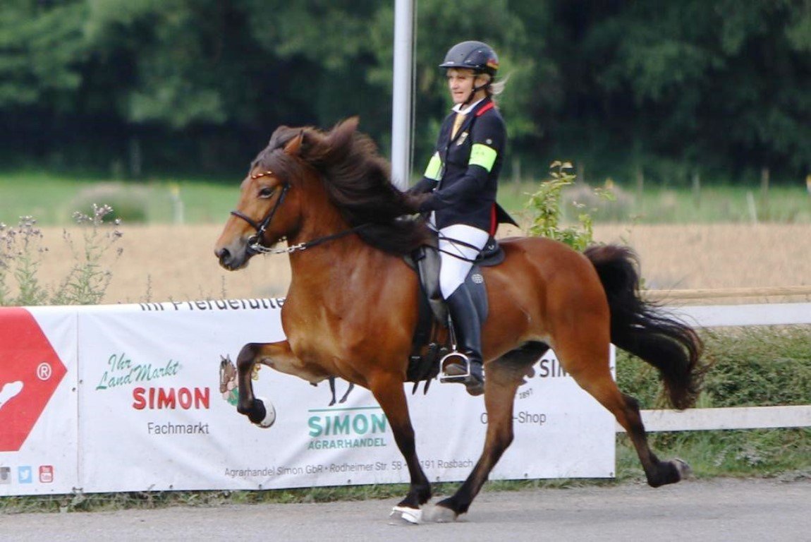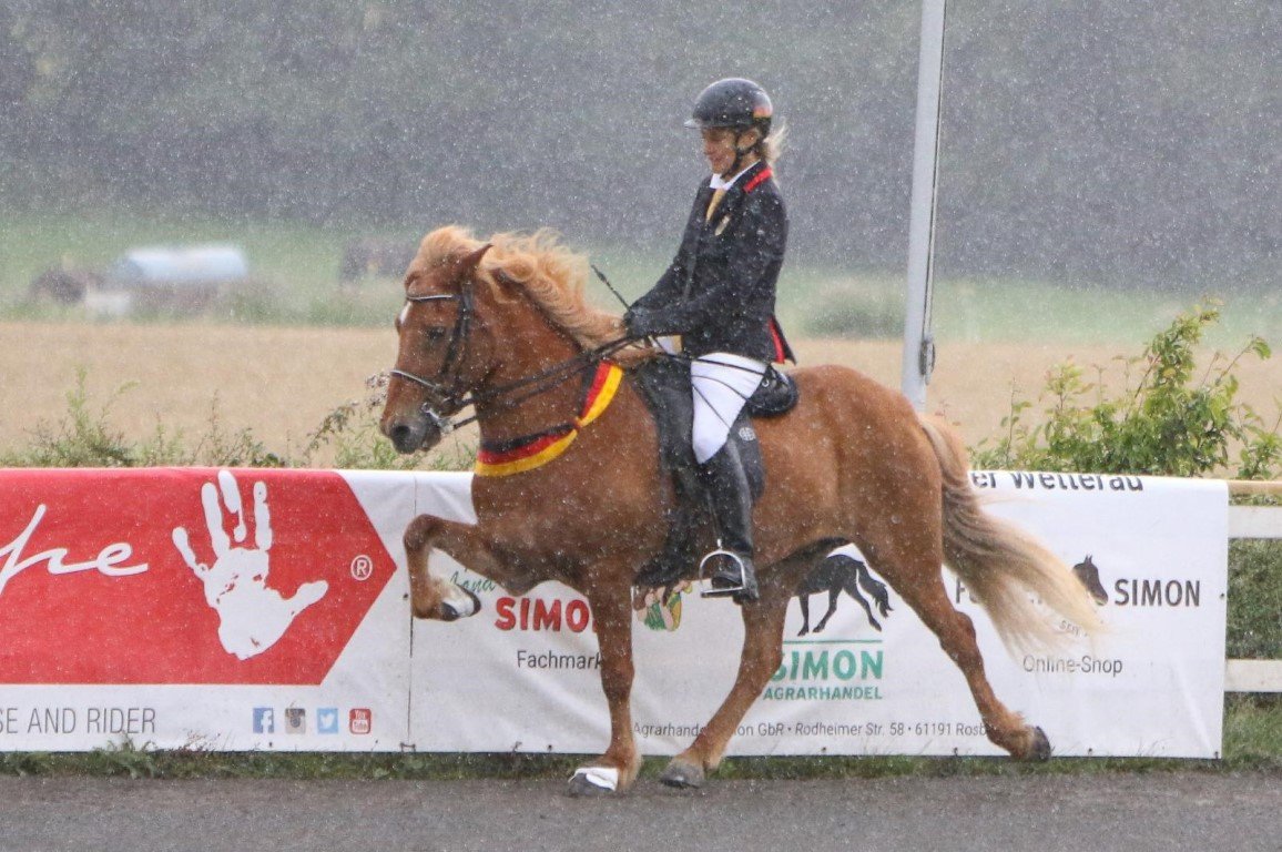Bei den Deutschen Islandpferdemeisterschaften in Wehrheim bei Frankfurt konnte sich Irene Reber gegen eine starke Konkurrenz durchsetzen. Bereits im Vorentscheid des Töltpreises zeigte sie eine großartige Vorstellung und im Finale konnte sie nochmal einen draufsetzen und erhielt für die grandiose Vorstellung die Note 8,00 (von 10).