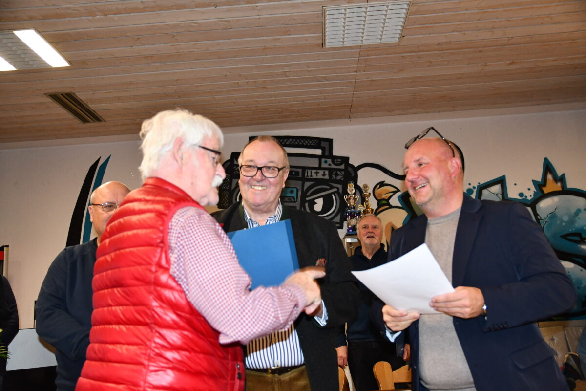 Rüdiger Hügel begründete seine These wie folgt: „Alle Gegner spielen gegen uns mit 120 Prozent“. Vorsitzender Michael Kurz freute sich, dass fast alle Ehrenmitglieder zur Versammlung gekommen waren. Karl-Heinz Rossmann und Werner Franken wurden dabei auch in diesen illustren Kreis aufgenommen. Beide erhielten von Kurz die Ehrenmitglieds-Urkunde.