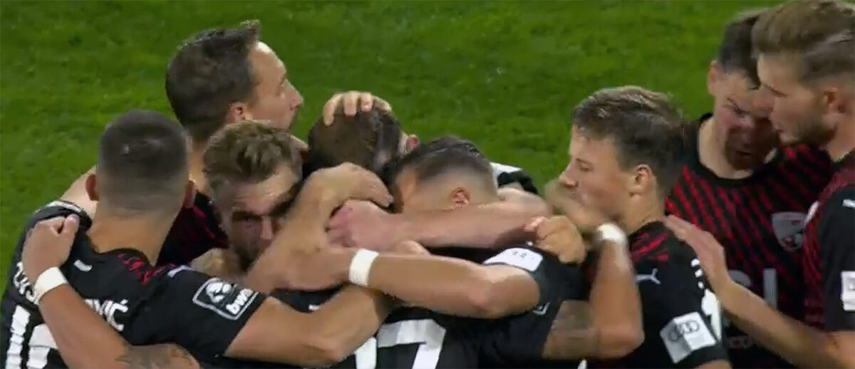 Dennoch, es sei ein super Spiel gewesen: „Am Ende ist es verdient, dass Regensburg gewonnen hat. Man darf in der Liga nicht passiv werden, das haben wir heute im eigenen Stadion zugelassen, das bestraft der Gegner.“ Und es hätte noch schlimmer kommen können für die Ingolstädter: Kurz nach der Pause schießt der eingewechselte Wuchtstürmer Eric Hottmann den verdutzen Kother an, von dessen Birne die Kugel ins Netz springt – ob Abseits oder nicht, kann auch mit diversen Kameraeinstellungen nicht endgültig geklärt werden.