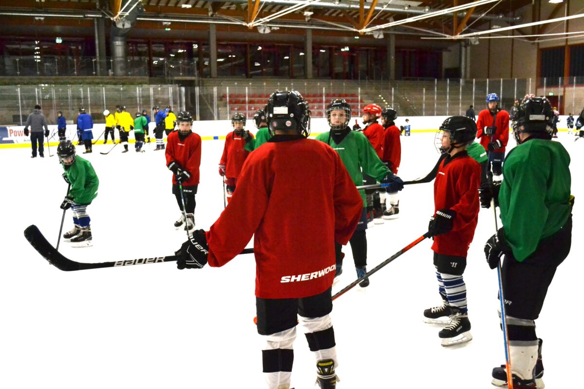 Während einige Kids in der Gruppe der Jüngeren noch die Grundelemente des Schlittschuhlaufens lernen, sind manch andere schon weiter, bewegen sich traumwandlerisch sicher auf dem Eis. Das gilt natürlich auch für die älteren Spieler wie Felix Günthner, denen der Trainerstab um Daniel Broschik schon einiges abverlangt. Torschüsse, Passtraining oder Eisslalom um Hütchen sind nur einige der Trainingsinhalte an diesem Tag. Nach eineinhalb Stunden ist Schluss, erschöpft, aber glücklich fahren die jungen Sportler vom Eis.
