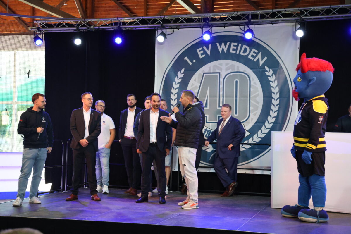 Die anschließende 40-Jahr-Feier des 1. EV Weiden wurde von rund 1.220 Stadionbesuchern als Ausklang für das hitzige Eishockeyspiel genutzt. Die perfekte Gelegenheit, um in der Hans-Schröpf-Arena die treue zum Eishockey und der Mannschaft zu feiern. Auch die Spieler wohnten dem Fest nach einer kurzen Erholungsphase bei. Ein besonderes Highlight für die Gäste war die Autogrammstunde im Rahmen der Feierlichkeit.