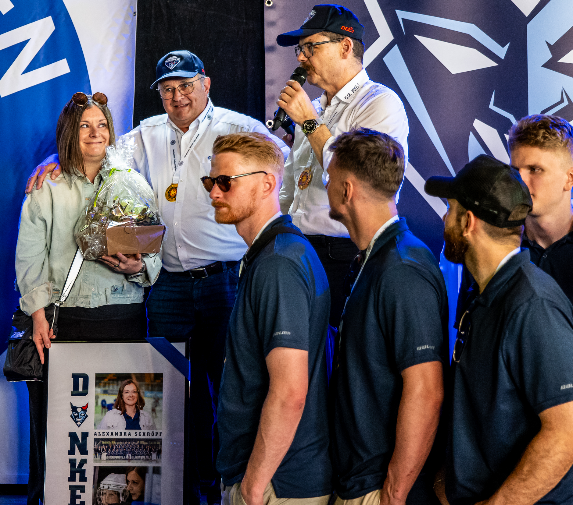 Devils-Familie wünschen wir Alexandra für ihre Zukunft alles Gute und freuen uns, dass sie uns als Fan weiterhin treu bleibt”, sagte erster EVW-Vorsitzender Thomas Siller und Blue Devils Spielbetriebs GmbH-Geschäftsführer Franz Vodermeier.
