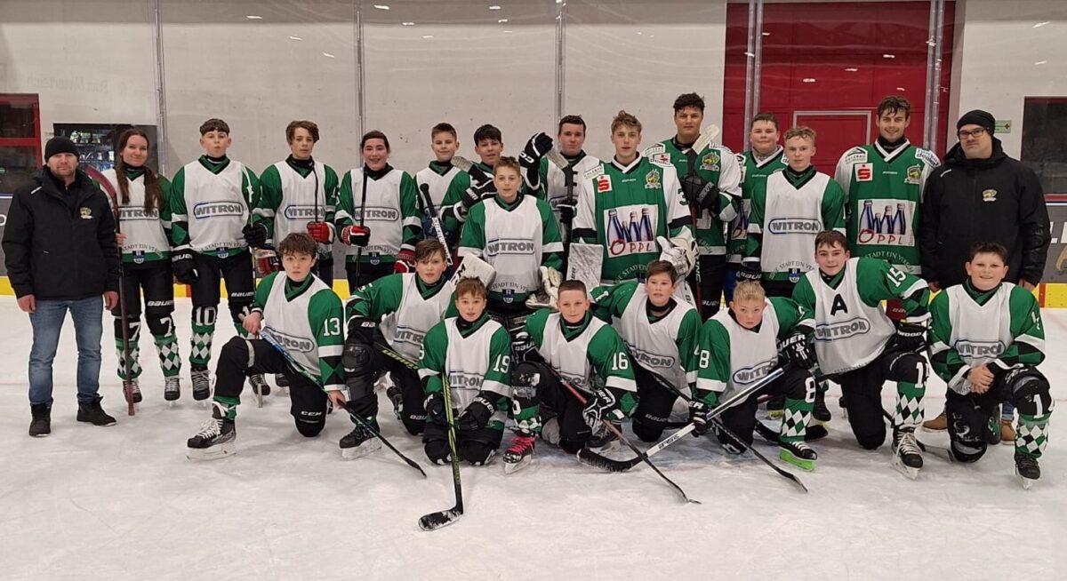 Elf lange Jahre waren die kleinen Kufenflitzer von der U 9 (16 Jungen, ein Mädchen) ohne Spielpraxis. Das hat sich heuer geändert. Ausgestattet mit neuen Trikots von der Firma Kassecker hat diese Mannschaft bereits drei Turniere gespielt und dabei einen kontinuierlichen Aufwärtstrend bewiesen. Blieb man beim ersten Turnier in Weiden noch ohne Sieg, feierte man danach in Pegnitz den ersten Erfolg und danach in Amberg sogar zwei Siege gegen Pegnitz und Weiden 1b. Am vergangenen Wochenende hatte der EHC zum eigenen U 9-Turnier eingeladen. Dabei musste sich der Mitterteicher Nachwuchs gegen Amberg und Weiden zwar knapp geschlagen geben, freute sich aber über drei Punkte gegen Pegnitz.