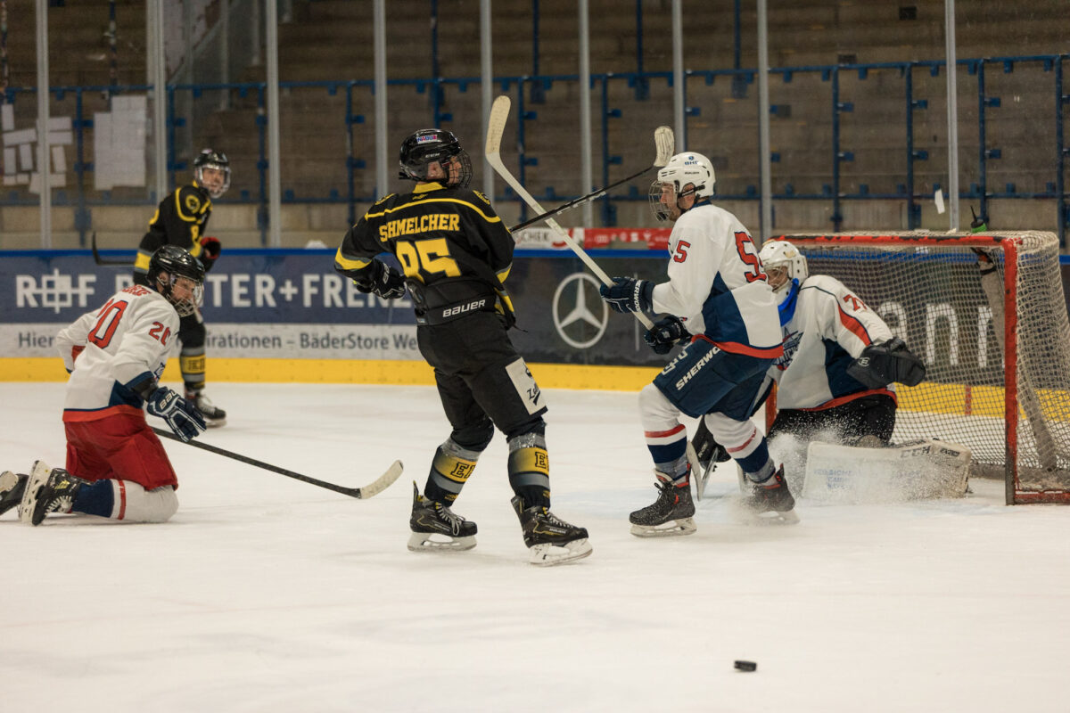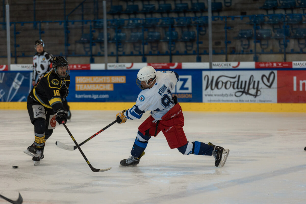 Einen kurzen Schreckmoment erlebten die Teams und Zuschauer kurz vor Ende des ersten Spiels am Sonntagmorgen. Nach einem harten Schlägerkontakt riss eine Plexiglasscheibe. Viele Verantwortliche dachten sofort an den früheren Scheibenbruch bei einem Spiel der Blue Devils, der damals einen Abbruch nach sich zog. Dieses Mal waren die Stadtwerke Weiden aber vorbereitet. Gemeinsam mit Helfern der Puckbusters tauschte der Eismeister die Scheibe zügig aus und so konnte das Turnier ohne lange Unterbrechung fortgeführt werden.