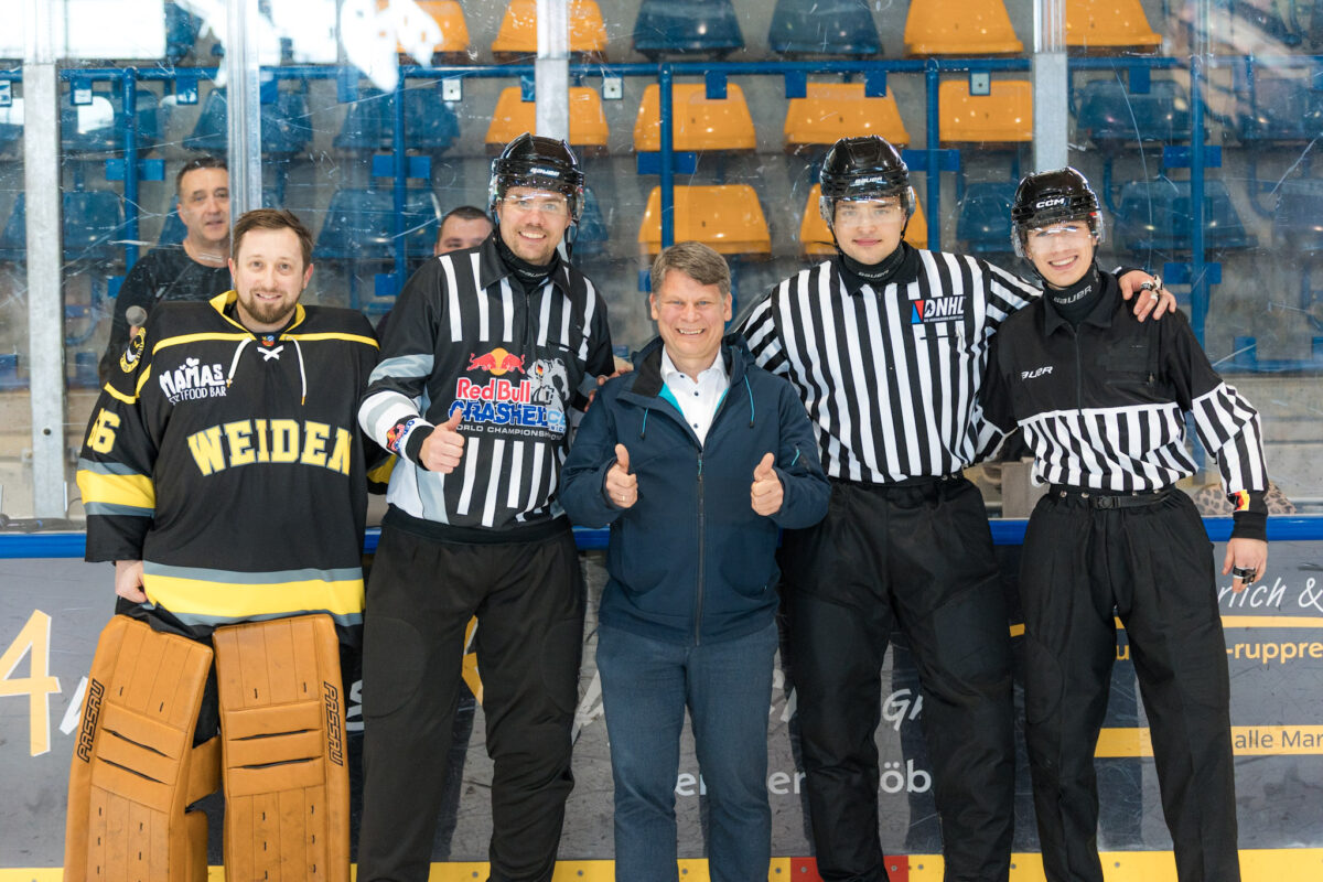 Der künftige Oberbürgermeister Benjamin Zeitler überbrachte die Grüße der Stadt Weiden und warf den Bulli ein. Auf Instagram schrieb er: „Ich bin ja sonst oft beim EV Weiden und unseren Blue Devils am Eis unterwegs – umso schöner ist es, auch die vielen Freizeitmannschaften zu erleben und zu sehen, mit wie viel Begeisterung und Einsatz hier gespielt wird. Großes Dankeschön an die Puckbusters für die top Organisation dieses rundum gelungenen Events!“
