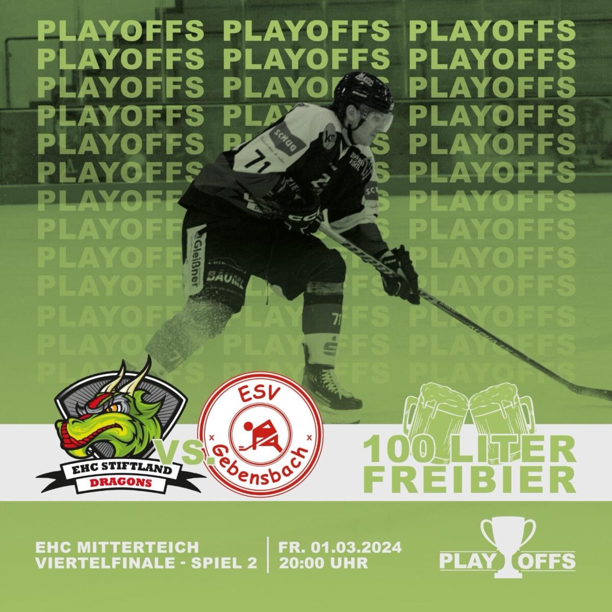 Beim Playoff-Rückspiel am Freitag, 20 Uhr, können sich die Fans nicht nur auf das Spiel, sondern auch auf 100 Liter Freibier eines Spenders, sondern auch auf einen Sektempfang und die anschließende Playoff-Party im Saal der Eishalle freuen.
