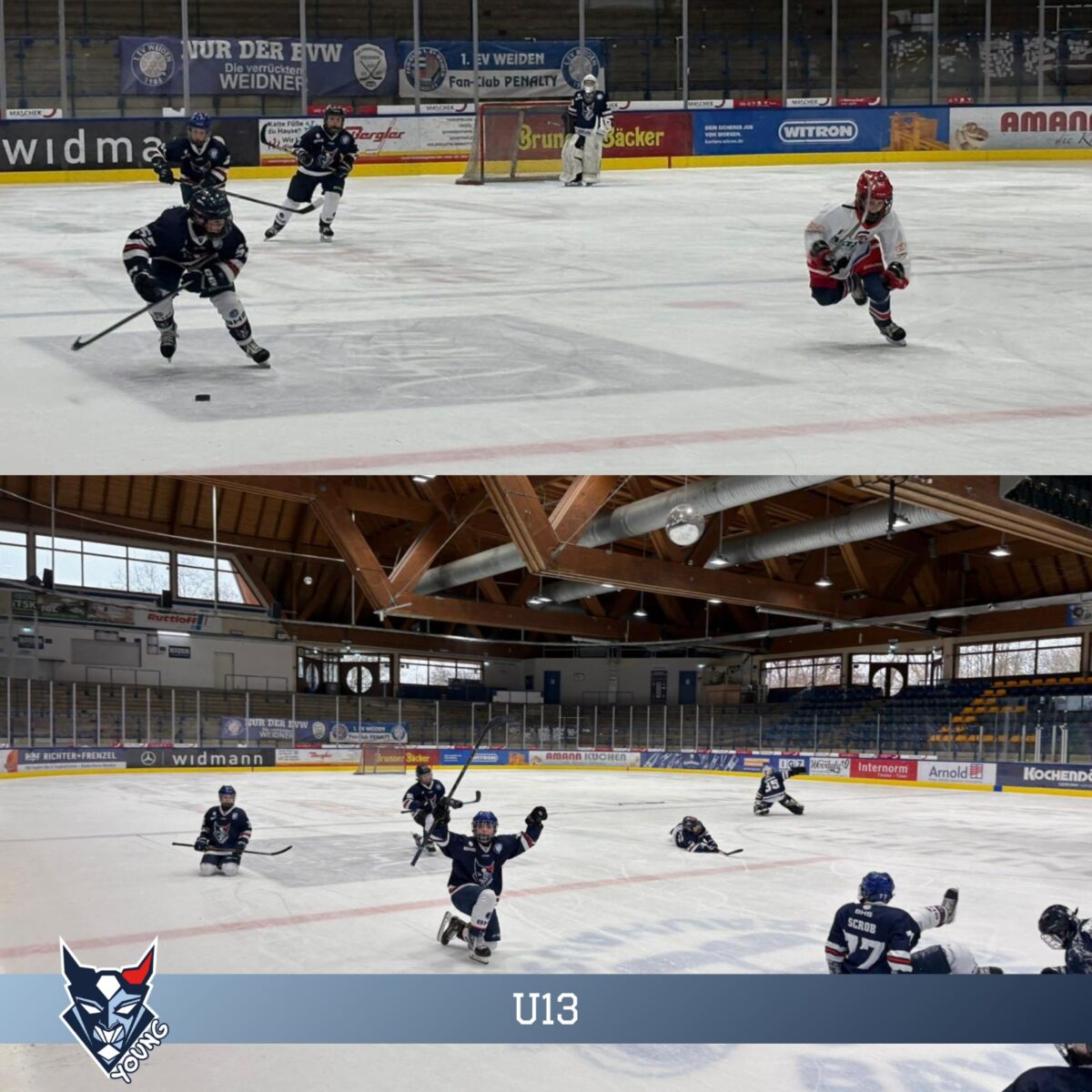 Am Samstag empfing die U13 ihre Gäste aus Erding. Im ersten Drittel zeigten die Weidener, wer die Hausherren sind, und legten mit dem 1:0 durch #11 Schönberger (Assist: #71 Buchwieser) und dem 2:0 durch #18 Weidenbach vor. Im zweiten Drittel fanden dann auch die Oberbayern ins Spiel und erhöhten auf 2:3. #45 Weidenbach gelang vor der Pause noch der Ausgleich. Nachdem Erding das 3:4 geschossen hatte, wachten die Young Blue Devils auf. #90 Grillmeyer schoss den Ausgleich, #66 Nürenberg (Assist: #90 Grillmeier) erzielte kurz danach das 5:4. Ebenfalls #66 Nürenberg (Assist: #13 Zimmermann) war es, der zum 6:4 traf. Ganz knapp vor dem Schlusssignal konnten die Gäste noch das 6:5 erzielen.