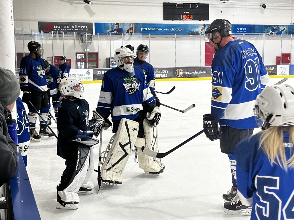Die Mitterteicher Eishalle ist gut belegt an diesem Samstagvormittag. Gut 30 Jungs und Mädels im Alter von sechs bis 18 Jahren und einige “Große” jagen der kleinen, schwarzen Hartgummischeibe hinterher. Immer abwechselnd in verschiedenen Teams spielen sie gegeneinander, angespornt und angeleitet von Christopher Moller und Johannes Höcht. Die beiden sind die Trainer der “Hockey Crocs”, der Krokodile”, im TSV Krummennaab, mischen selbst fleißig mit und haben immer wertvolle Tipps für den Nachwuchs und auch für die “etwas älteren Semester” parat.
