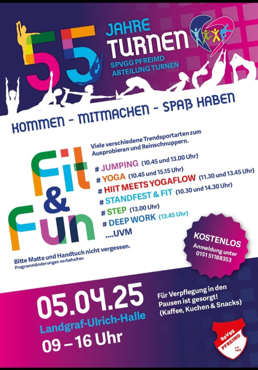 Wer den Abend verpasst hat, hat kommende Woche nochmal eine Chance: Am 5. April präsentieren die Turner in der Landgraf-Ulrich-Halle ein abwechslungsreiches Programm an Trendsportarten zum Mitmachen mit u.a. Jumping, Yoga, Step und Deep Work.