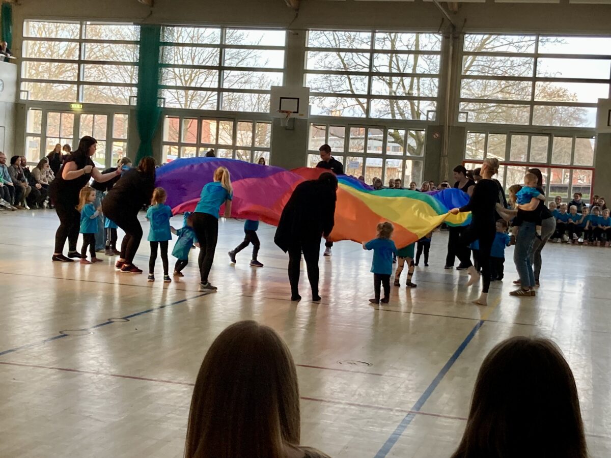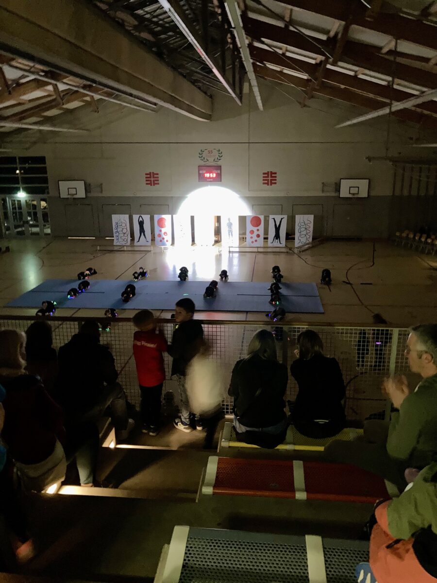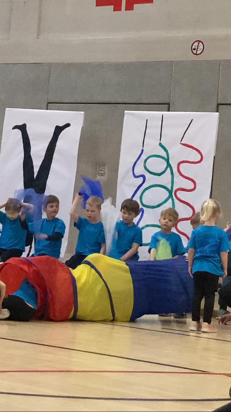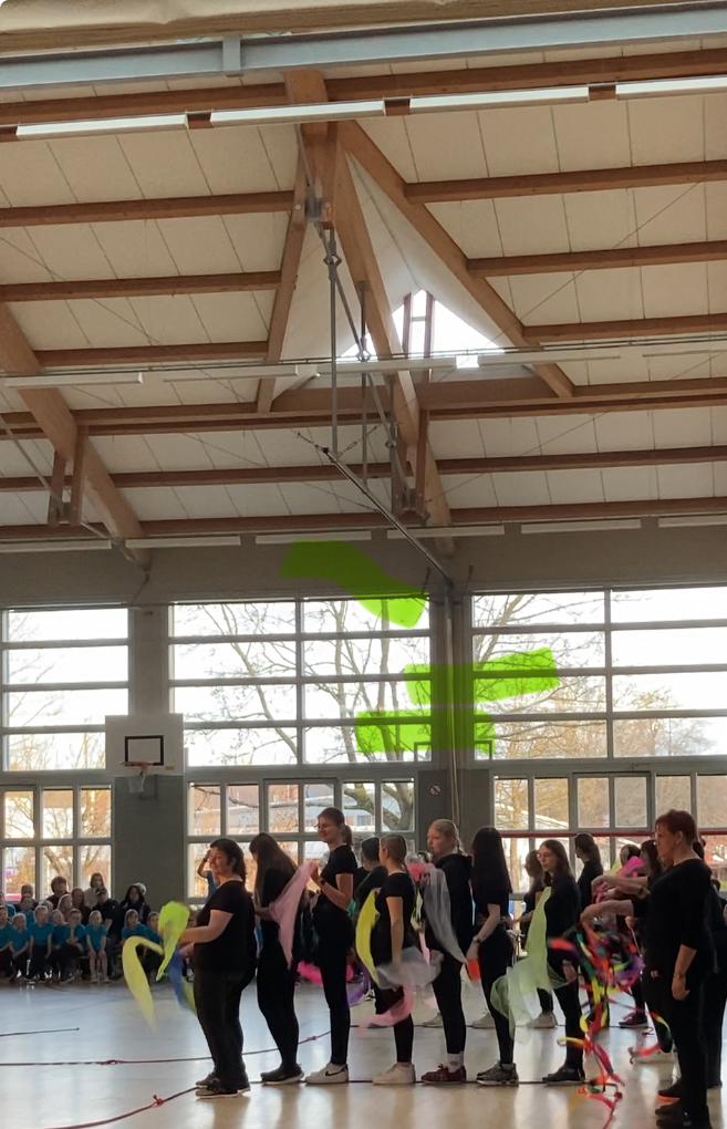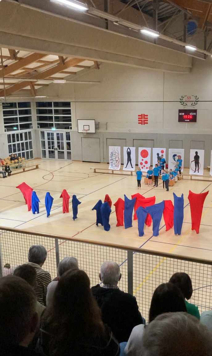 Die Älteren zeigen, dass so viel Spielfreude, mit Ausdauer, helfender Hand und Mut verstetigt, auf Anmut, Kraft und Eleganz hinaus läuft: Sie springen im Spagat vom Trampolin, rollen nach Radschlag noch über den Schwebebalken, gehen in den Pausen für Worte spontan in Spagat und Brücke. Gemeinsam richten sie die Turngeräte neu her für die nächste und nächste und nächste Aufführung.