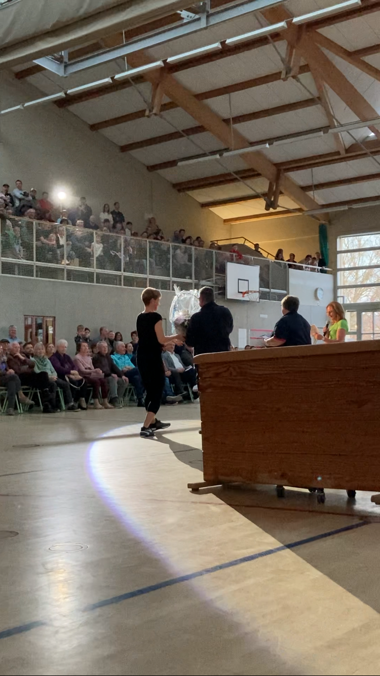 Die Übungsleiterin erwiderte den Dank: “Die Stadt Pfreimd stellt uns die Halle kostenlos zur Verfügung und unterstützt uns bei Großveranstaltungen.” Hausmeister Markus “Munti” Muntanjohl bekam einen großen Geschenkkorb der Anerkennung. Für die Übungsleiterinnen wurden Kinder zu Blumenstraußträgern. Blumenstraußläufern. Blumenstraußübergebern. Bedankt war auch die Firma Hägler aus Pfreimd für ihre Unterstützung.