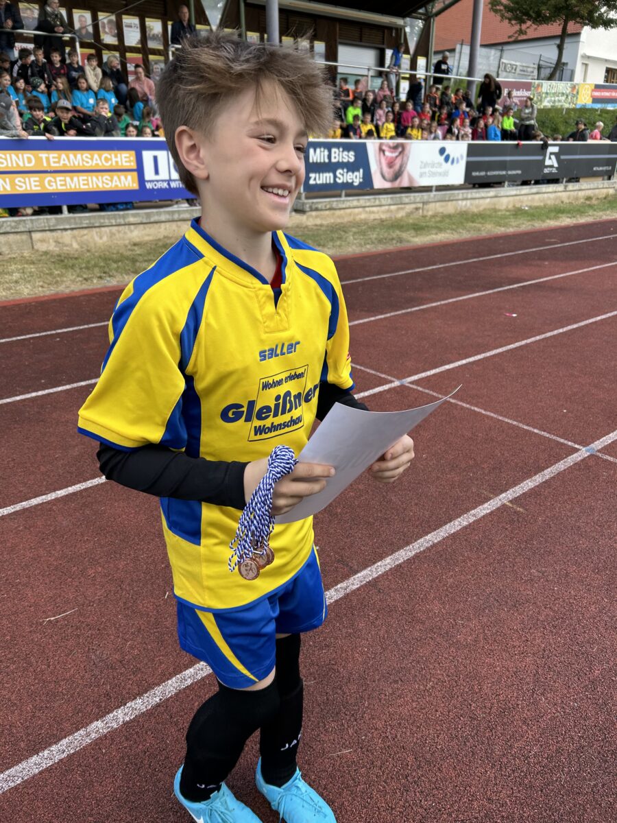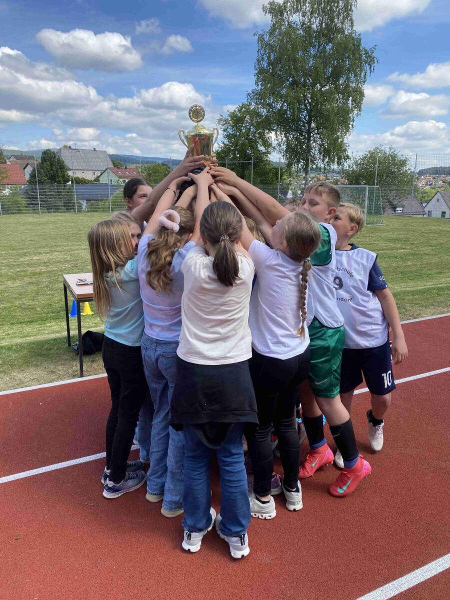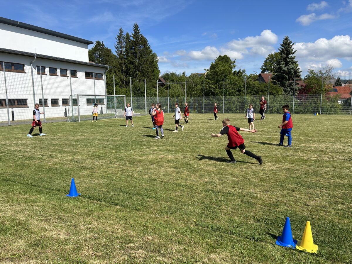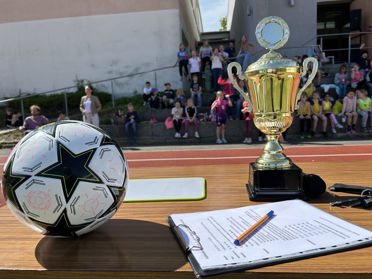 Die dritten und vierten Klassen der Grundschule Erbendorf trafen sich auf dem schuleigenen Fußballplatz, um den Grundschulmeister des Schuljahres 2024/2025 zu küren. Jede Klasse trat mit sechs Feldspielern und einem Torhüter an. Mindestens ein Mädchen musste immer auf dem Feld vertreten sein. Gewechselt werden durfte fliegend. Gespielt wurden zehn Minuten im Modus “Jeder gegen Jeden”, um den Wanderpokal der Grundschule zu erringen. Unterstützt von den eigenen Klassenkameraden und Kameradinnen entwickelte sich ein stimmungsvolles Turnier bei besten äußeren Bedingungen, das mit der Klasse 4a einen verdienten Sieger fand.