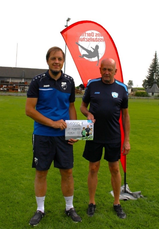 Besondere Anerkennung verdient Franz Heinrich, dessen unermüdlicher Einsatz hinter dem Erfolg der Veranstaltung steht. Zum fünften Mal in Folge überreichte er an den Jugendleiter Manuel Enders einen 1.000 Euro Gutschein der Hans Dorfner Fußballschule, einzulösen beim Sportartikelhersteller JAKO. Über die vergangenen 14 Jahre hat Franz Heinrich damit eine beachtliche Summe in den Jugendbereich der Sportfreunde Kondrau investiert.