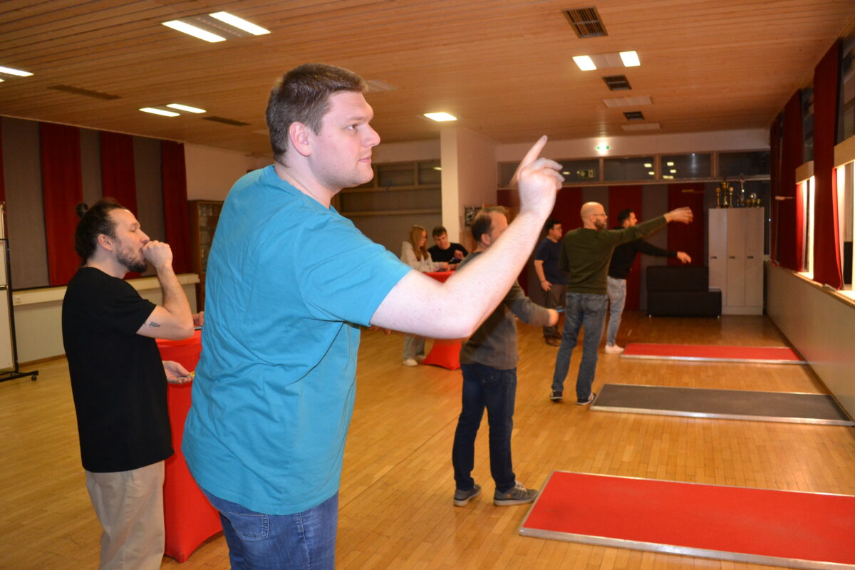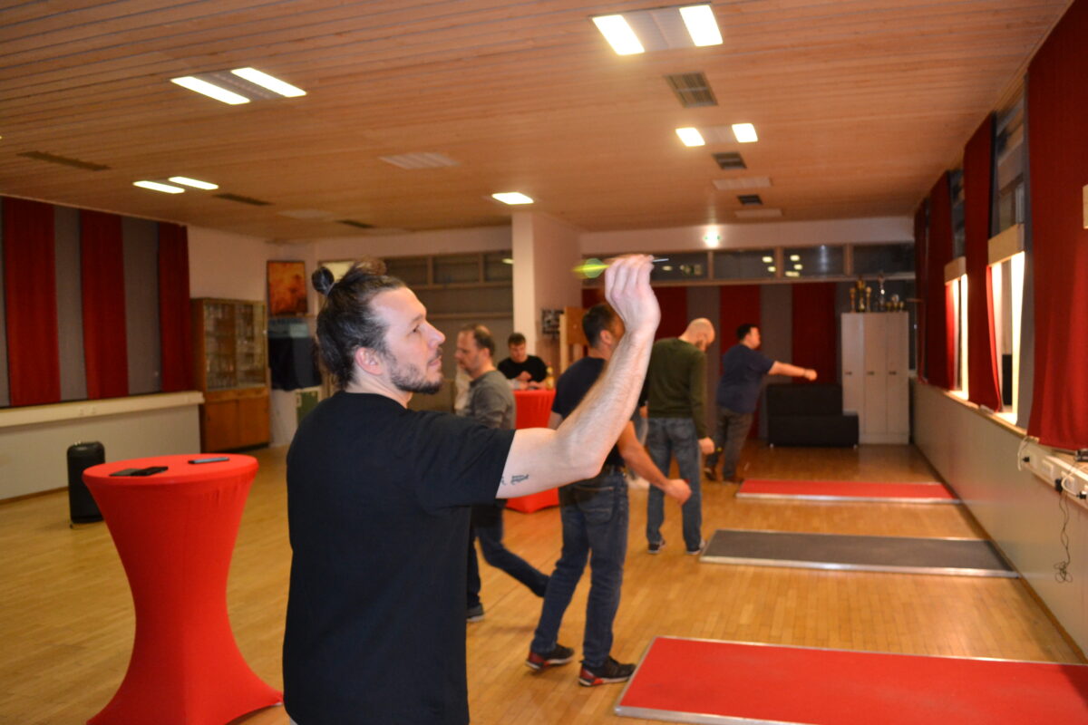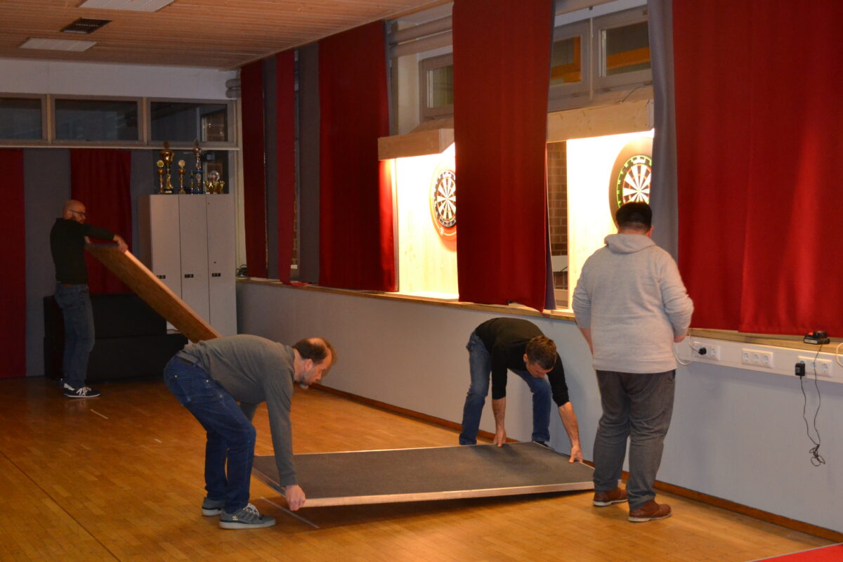 Mittwoch, 18.30 Uhr: Die ersten Darter treffen zum Training im Jugendraum ein. Bevor sie loslegen können, müssen sie zunächst die Scheiben “enthüllen” und die Abstandsplatten davor aufbauen. Die acht Kästen mit den Dartscheiben haben die beiden Spartenleiter in Eigenregie gebaut. Finanziell unterstützt wird die Dartabteilung von mehreren Weidener Firmen, “wobei weitere Sponsoren immer willkommen sind”, betont Dineiger. Zwölf bis 15 Männer von 15 bis 55 Jahren, vom Anfänger bis zum Fortgeschrittenen, kommen durchschnittlich zu den Trainingseinheiten am Dienstag und Mittwoch. “Eine kunterbunte Mischung”, sagt “Igor”, wie der auch beim Schwimm- und Tennisverein aktive Multisportler überall genannt wird. Jeder und jede, die sich für diesen Sport interessieren, sei willkommen. “Man ist nie zu schlecht, kann Dart schnell lernen und muss keine Angst vor dem ersten Mal haben”, appelliert der Spartenleiter an potenzielle Interessierte.