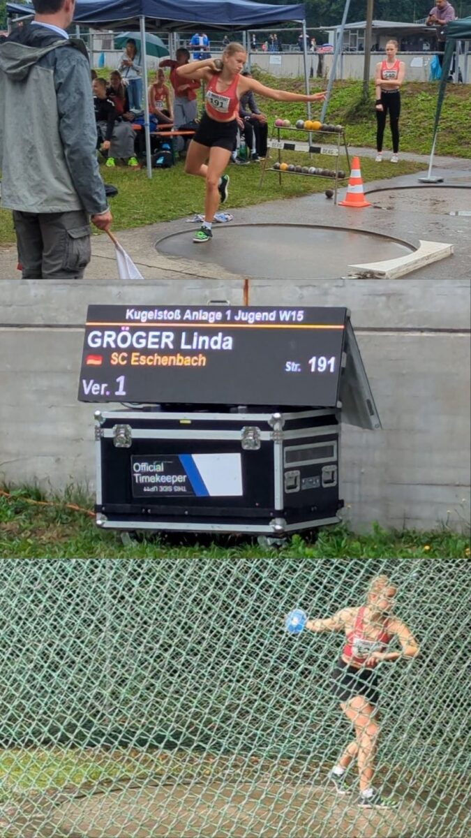 Auch Linda Gröger präsentierte sich in bestechender Form. Im Kugelstoßen zeigte sie eine ganz starke Wurfserie und erreichte mit 10,52 Metern Platz 9. Etwas unglücklich verfehlte sie den Einzug in den Endkampf der besten Acht um lediglich drei Zentimeter – eine denkbar knappe Entscheidung, zumal ihre Würfe durchweg konstant stark waren. Auch im Diskuswurf ging es eng zu: Mit 30,01 Metern erzielte sie eine fantastische Weite, doch auch hier reichte es in einem sehr ausgeglichenen Teilnehmerfeld „nur“ zu Platz 7. Ihre Leistungen zeugen jedoch von Stabilität und großem Potenzial, und die knappen Platzierungen zeigen, dass Linda zur absoluten bayerischen Spitze gehört.