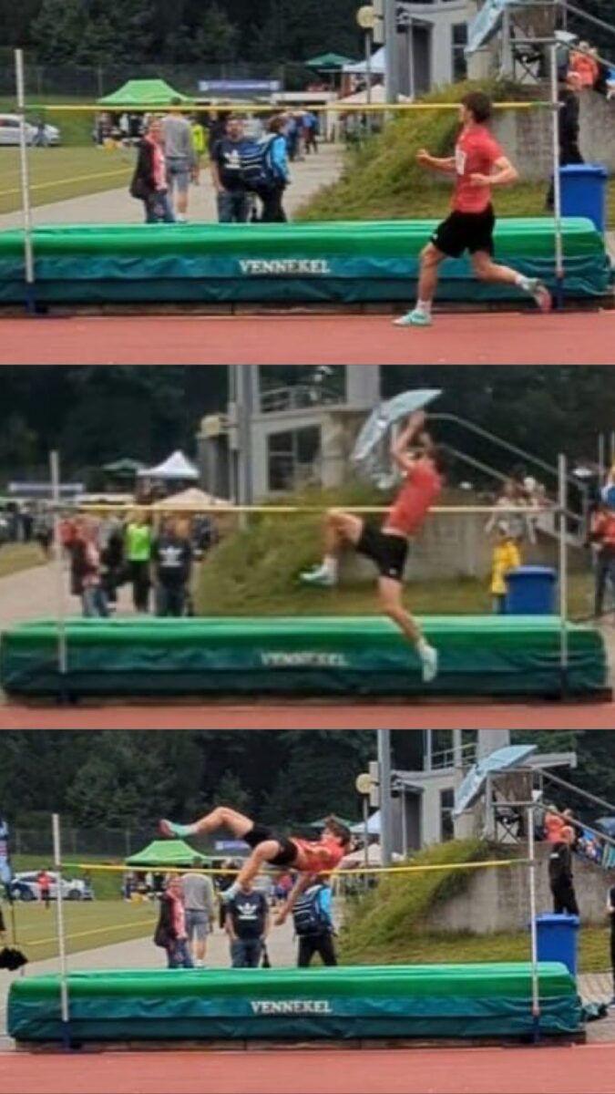 Dritter im Bunde war Valentin Schmidt, der ebenfalls erstmals auf bayerischer Ebene startete – und das mit gleich drei Disziplinen. Im Hochsprung überquerte er souverän 1,61 Meter, was ihm Platz 6 einbrachte. Im anschließenden Diskuswurf ließ er den 1-kg-Diskus auf starke 36,35 Meter fliegen – Platz 10. Beide Leistungen sind persönliche Bestleistungen. Auch im Weitsprung zeigte er Nervenstärke und erzielte mit 5,24 Metern den 9. Platz.