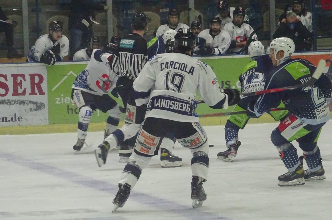 Tore: 1:0 (1:11) Edgars Homjakovs (Schusser, Rubes), 1:1 (4:15) Adriano Carciola (Rypar, Mitchell), 2:1 (9:50) Michael Kirchberger (Habermann, Palka), 2:2 (24:54) Maximilian Raß (Krammer), 2:3 (37:03) Christopher Mitchell (Gäbelein), 3:3 (40:27) Nick Latta (Rubes, Müller), 4:3 (41:30) Edgars Homjakovs (Schmidt, Schusser), 5:3 (43:00) Marius Schmidt (Rubes, Jakob), 5:4 (45:00) Patrik Rypar (Carciola, Raß), 6:4 (48:39) Edgars Homjakovs (Louis Latta, Schmidt), 7:4 (54:24) Dennis Palka (Nick Latta, Rubes), 7:5 (57:00) Dennis Sturm; Strafminuten: Weiden 6 – Landsberg 10; Powerplay: Weiden 1/5 – Landsberg 0/3; HSR: Thorsten Lajoie [/box]