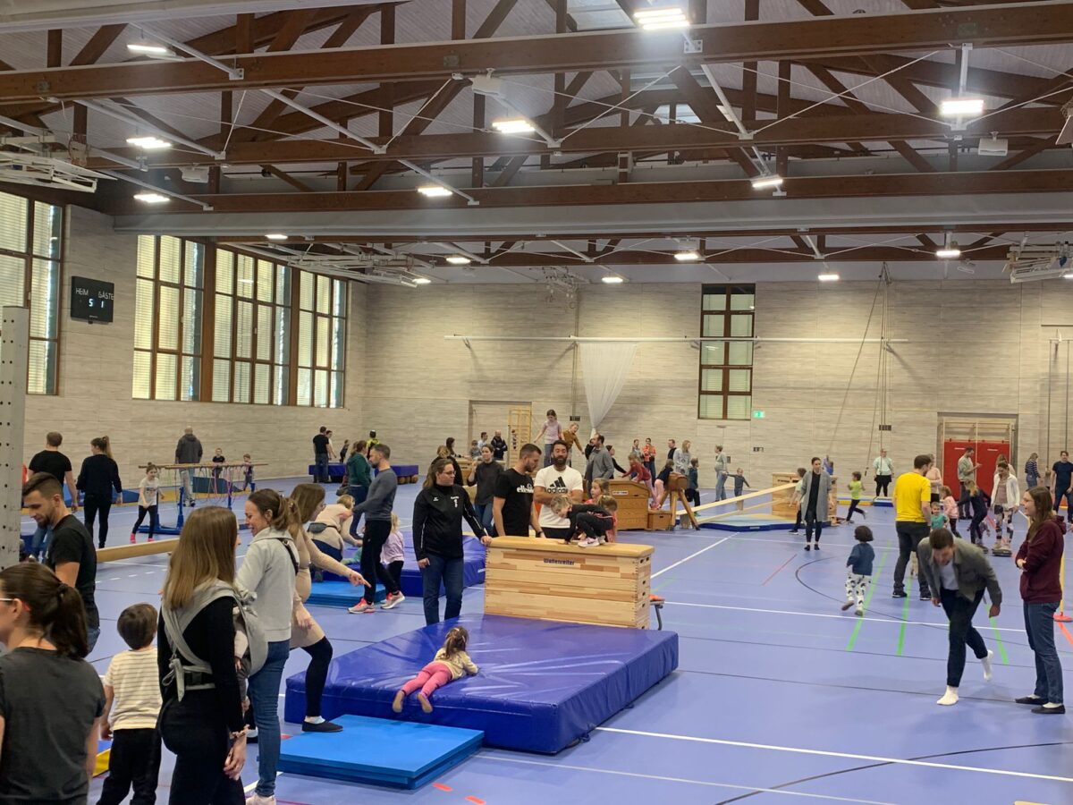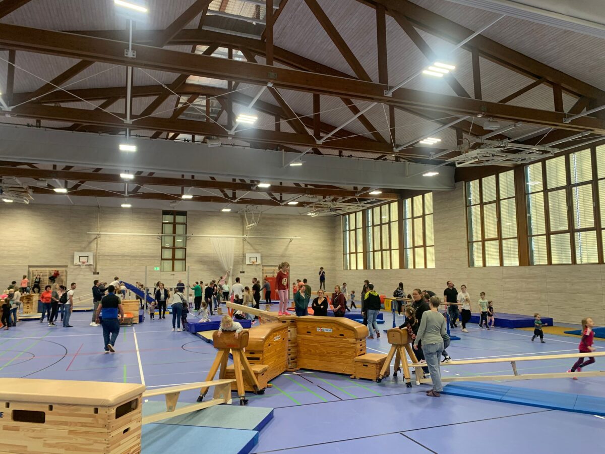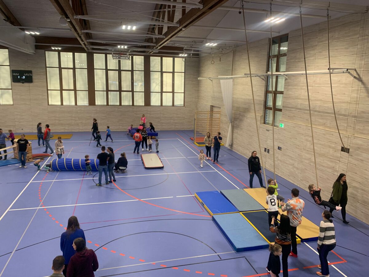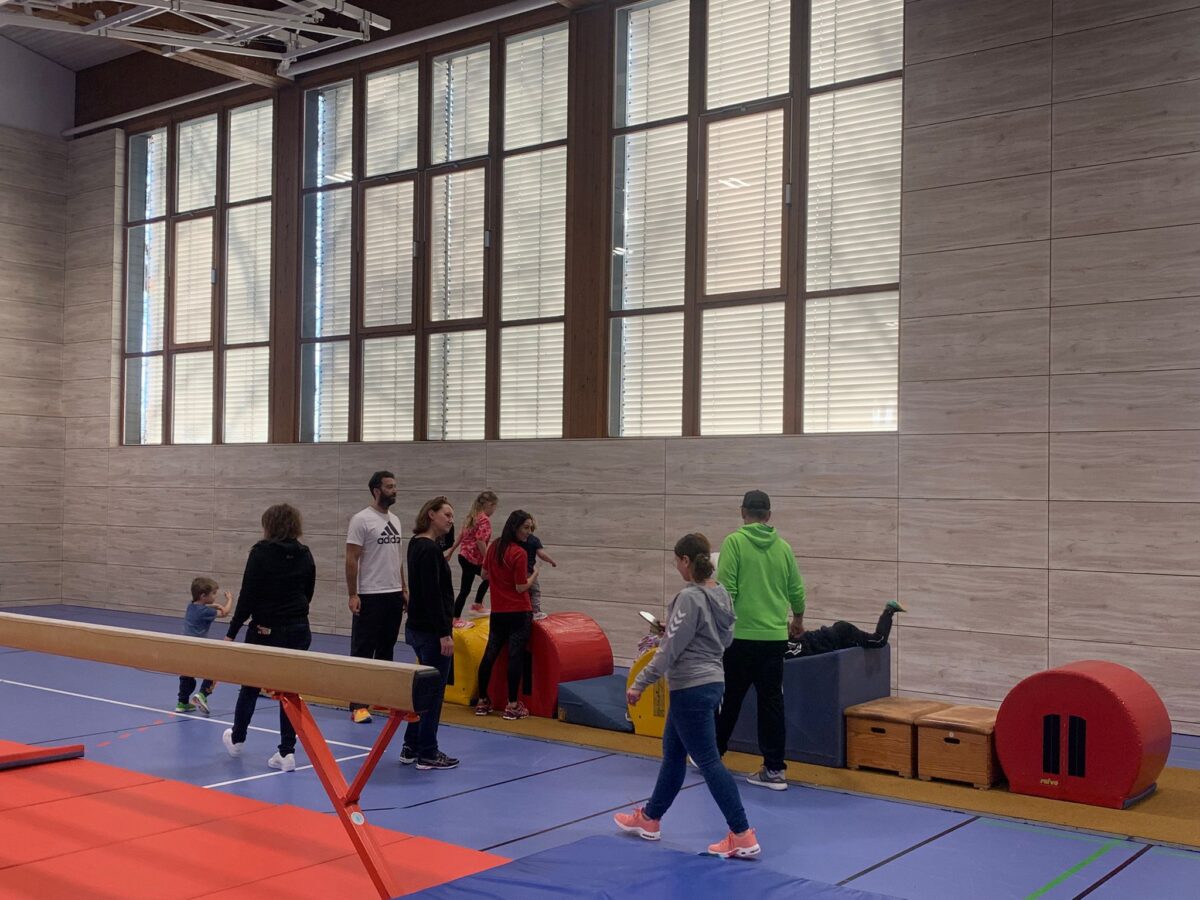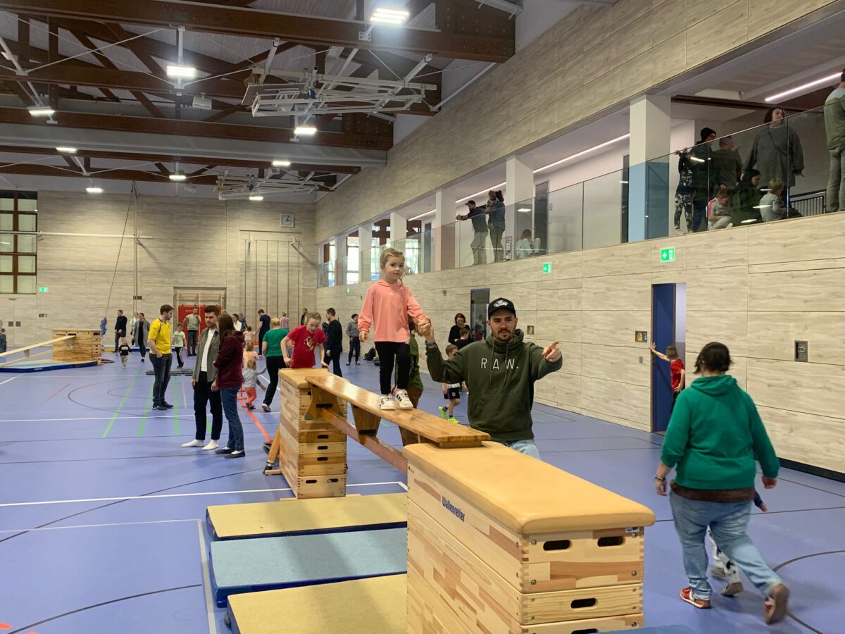 Die Kinder strahlten vor Freude, als sie die vielfältigen Bewegungsmöglichkeiten in der Halle entdeckten. Von Schwebebalken über Kletterwände bis hin zu Kästen und Springböcken war alles dabei. Die Geräte erstreckten sich über die gesamte Halle und boten Herausforderungen für jedes Alter. Viele Eltern freuten sich ebenfalls, nach den Feiertagen, mit all ihren kulinarischen Genüssen, aktiv zu werden, und gemeinsam mit ihren Kindern die Geräte zu erobern. Die Kleinen balancierten und tobten, während einige Väter und Mütter lachend über Kästen sprangen – ein Spaß für die ganze Familie.