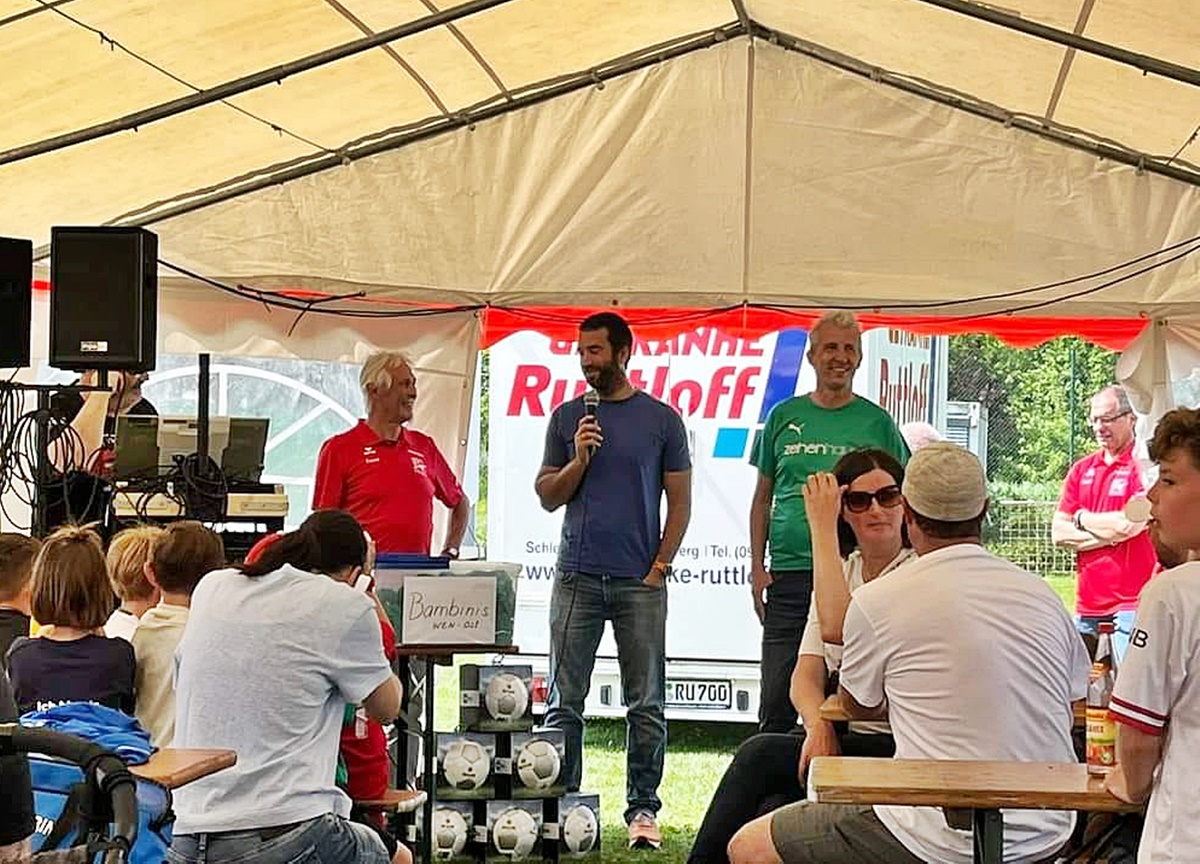 Zur Eröffnung begrüßte der Verein Christian Wolf (Global Health Management) und Anna Bauer (HR / Expert People Marketing & Social Media) von BHS Corrugated. Wolf übergab an die Bambini des Vereins einen neuen Trikotsatz, natürlich im typischen FC-Ost-Grün.